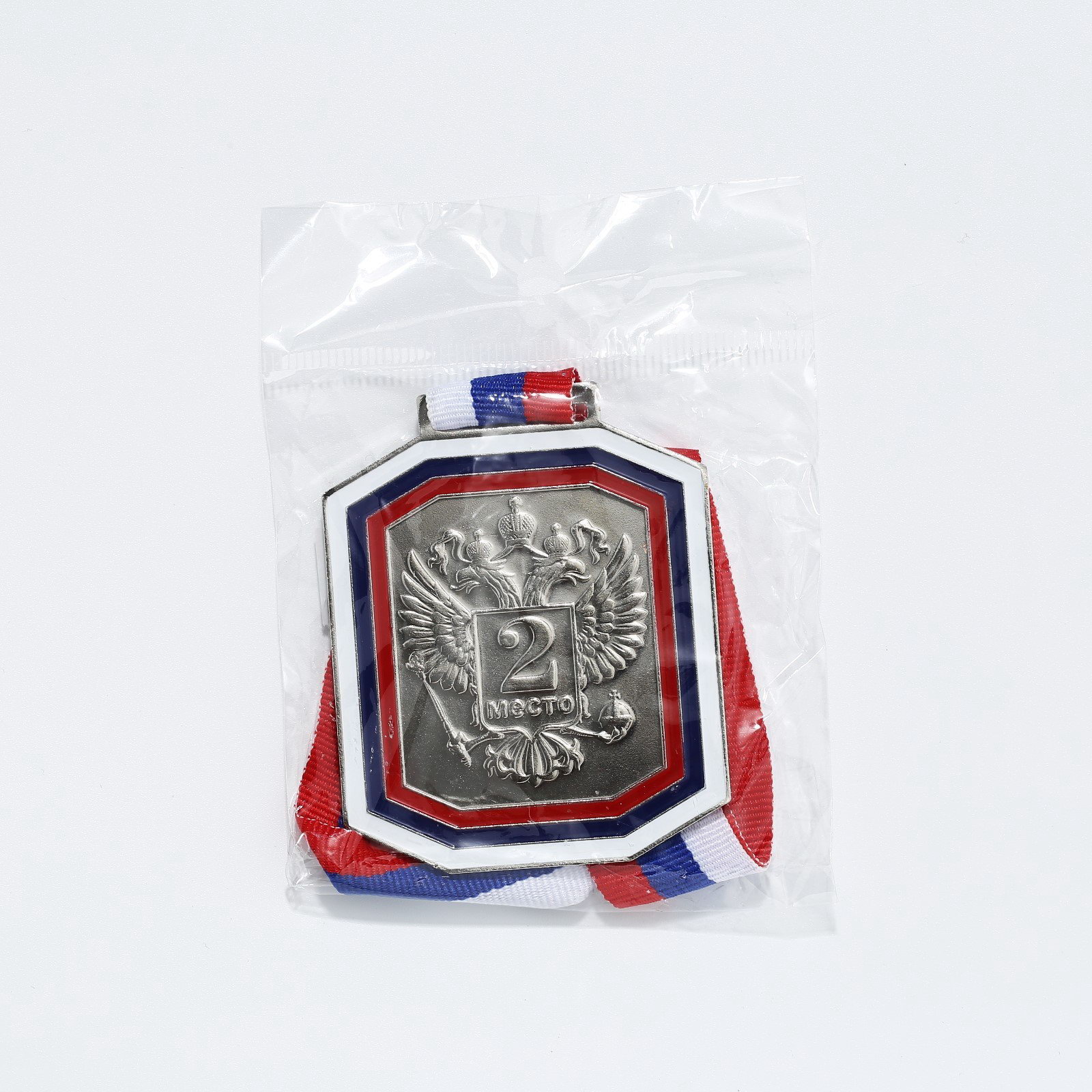 Медаль призовая серебро, 2 место, с лентой, 6x7 см, 0.2x6x5 см., Сима-ленд, Китай