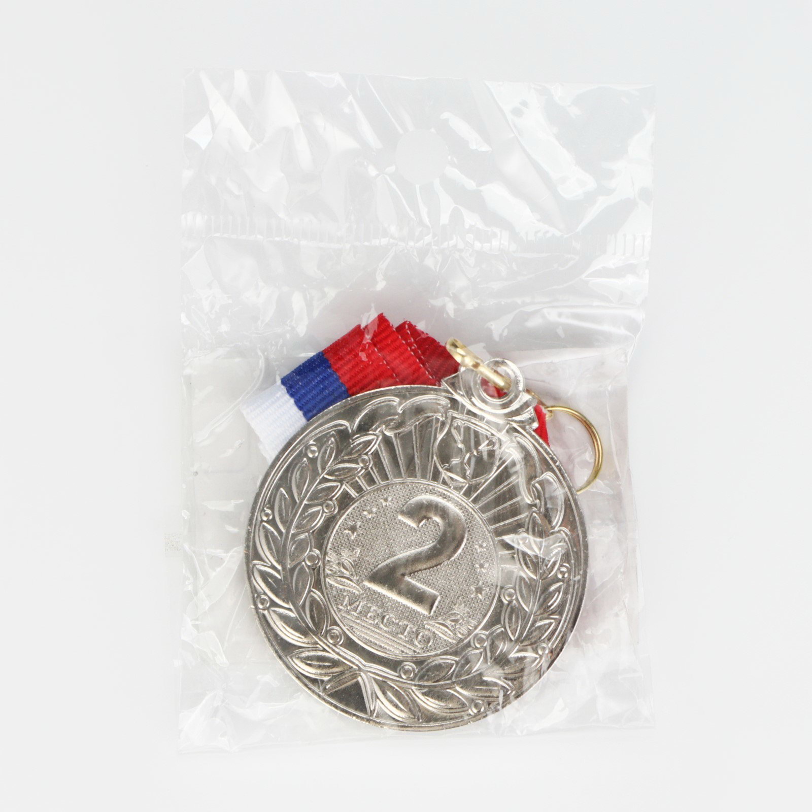 Медаль призовая серебро, d=5 см, 2 место, с лентой, 500х500х5 см., Сима-ленд, Китай