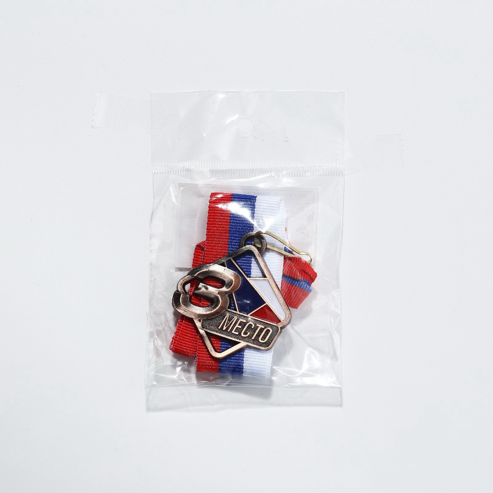 Медаль призовая бронза, d=4 см, 3 место, с лентой, 40х40х4 см., Сима-ленд, КИТАЙ