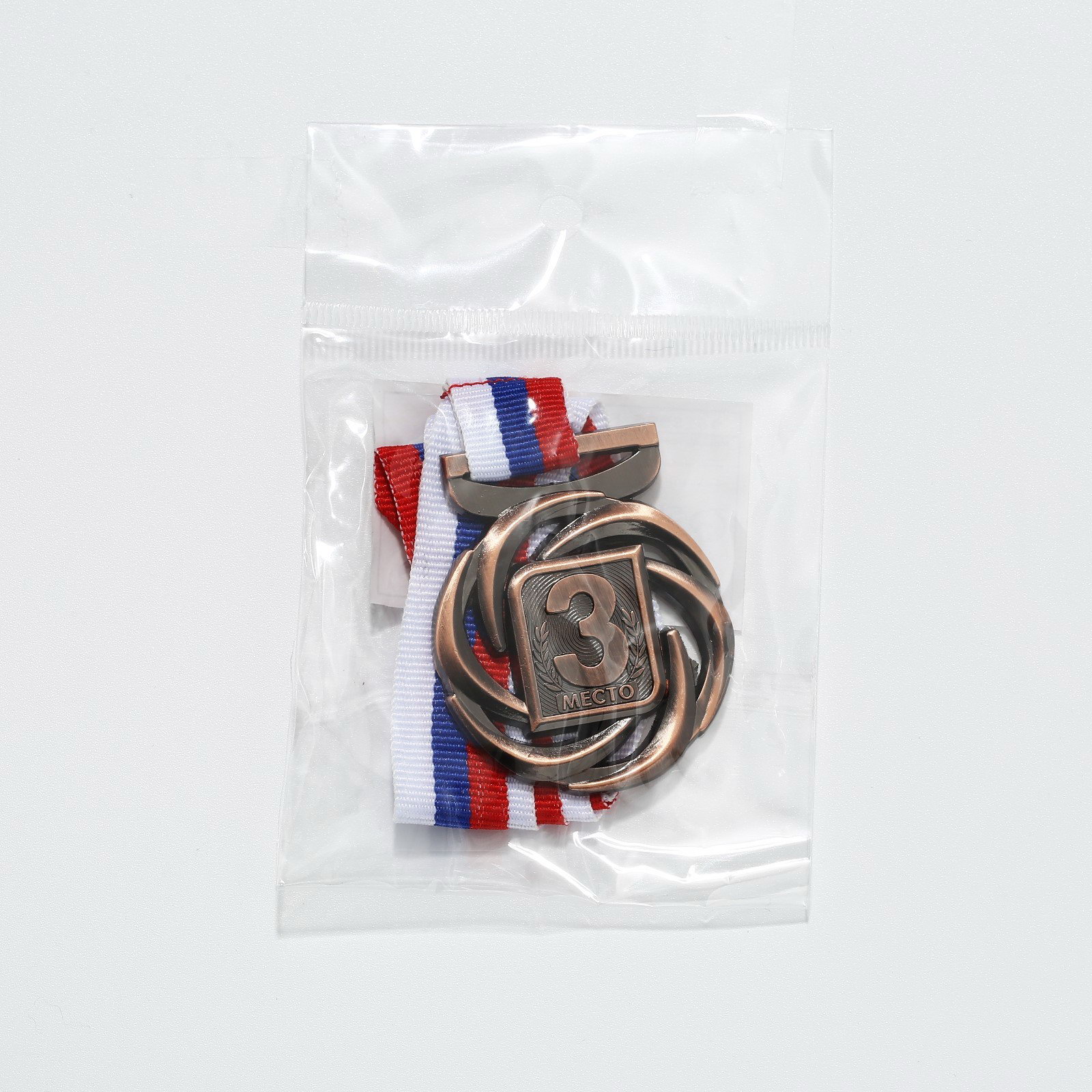 Медаль призовая бронза, d=4 см, 3 место, с лентой, 40х40х4 см., Сима-ленд, Китай