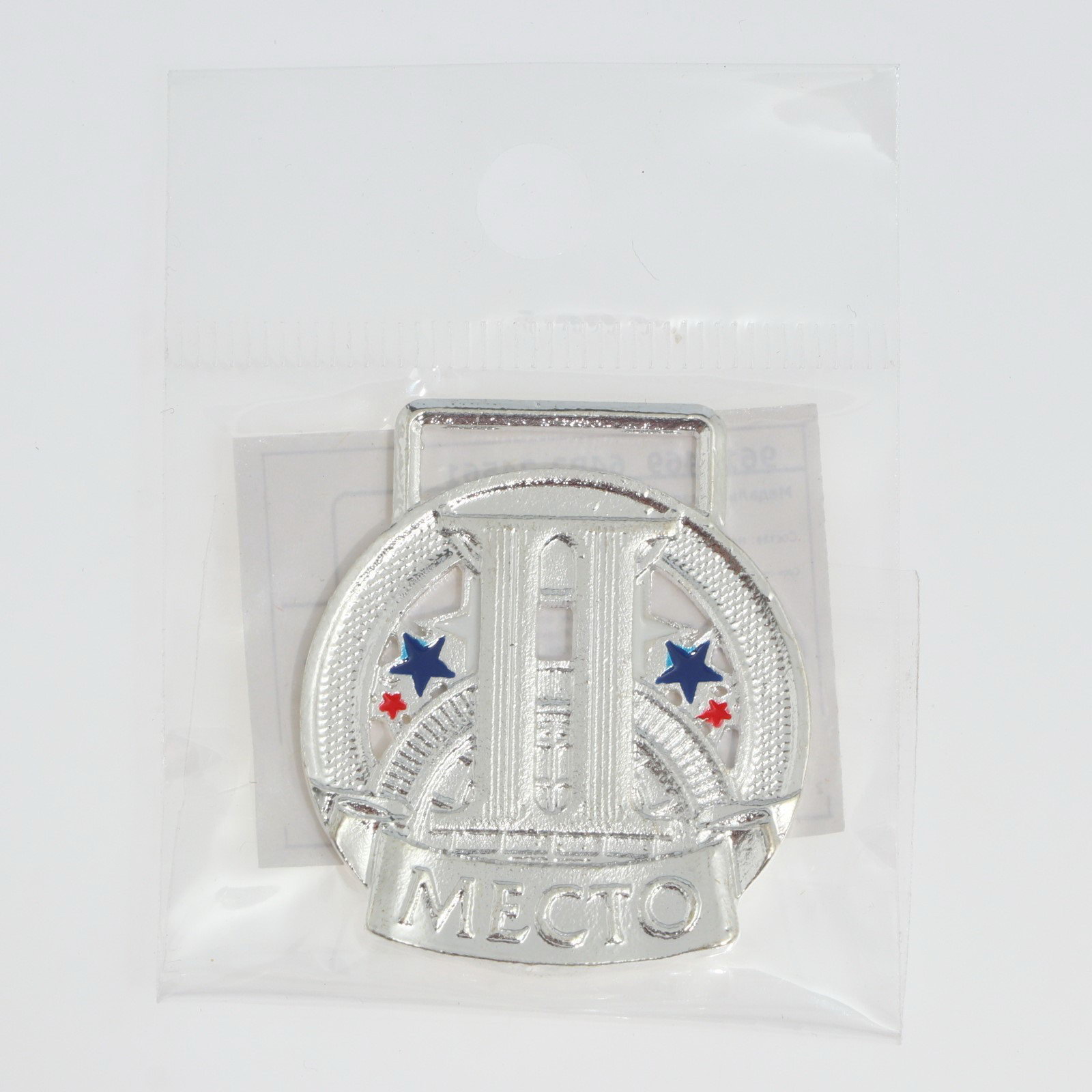 Медаль призовая серебро, d=3.5 см, 2 место, без ленты, 35х35х3.5 см., Сима-ленд, Китай