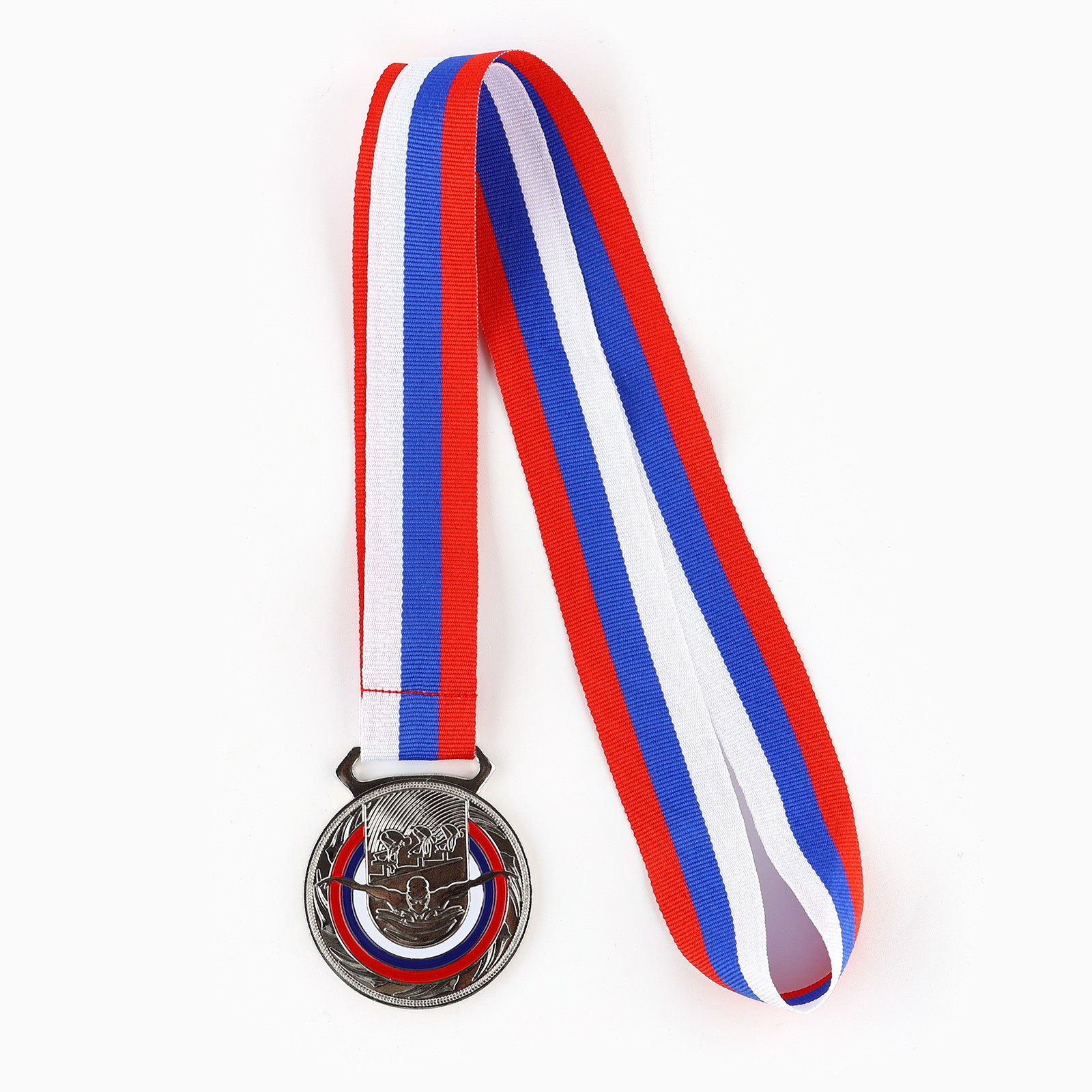 Медаль тематическая серебро "Плавание", d=5 см, с лентой, 50х50х0.2 см., Сима-ленд, Китай