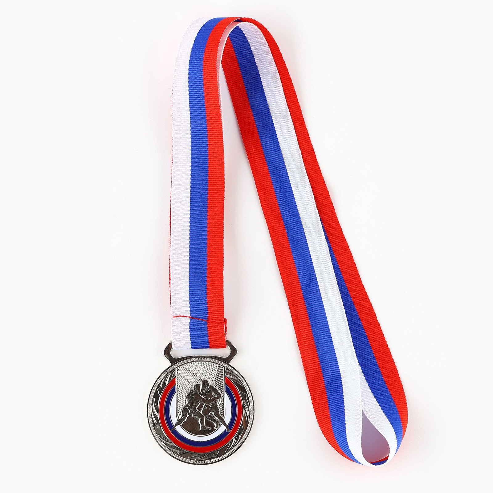 Медаль тематическая серебро "Борьба", d=5 см, с лентой, 50х50х0.2 см., Сима-ленд, Китай