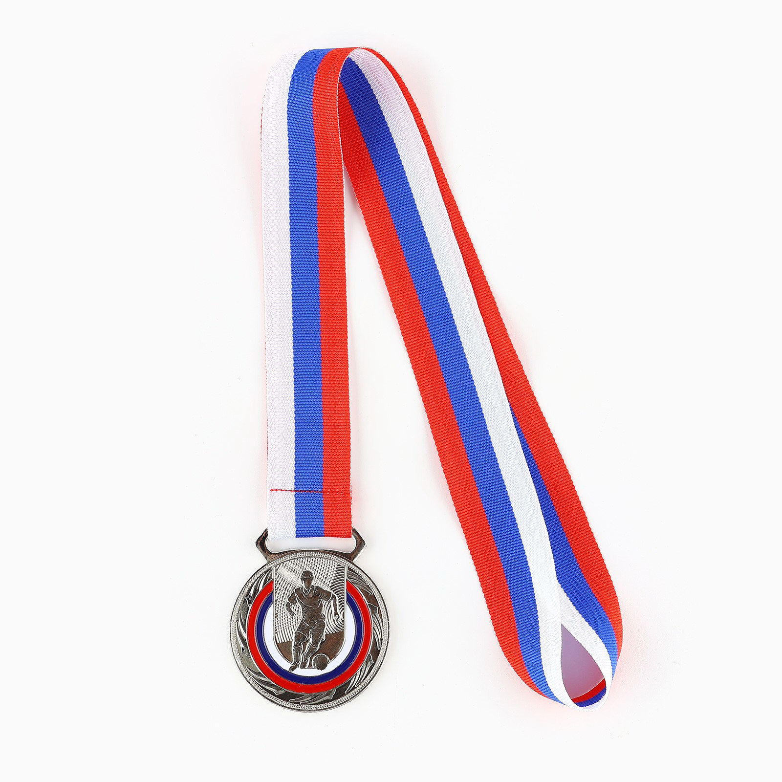 Медаль тематическая серебро "Футбол", d=5 см, с лентой, 50х50х0.2 см., Сима-ленд, Китай