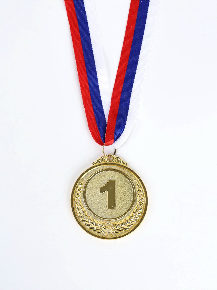 Медаль призовая "1 место" золотая 200, d=6.5 см, с лентой, 65х65х0.3 см., Сима-ленд, Китай