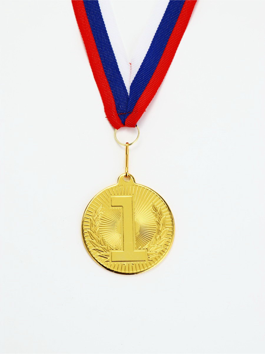 Медаль призовая "1 место", золото 203, d=5 см, с лентой, 50х50х0.2 см., Сима-ленд, Китай