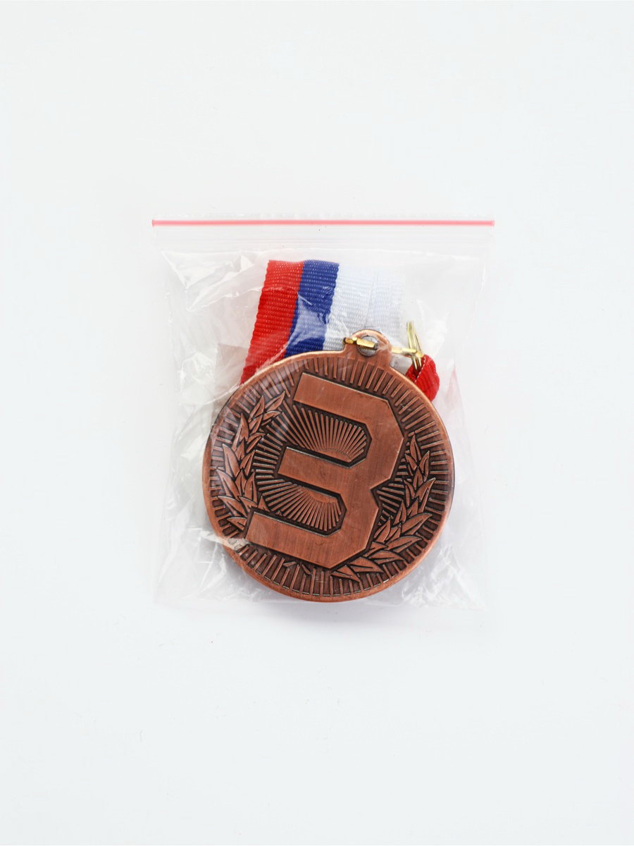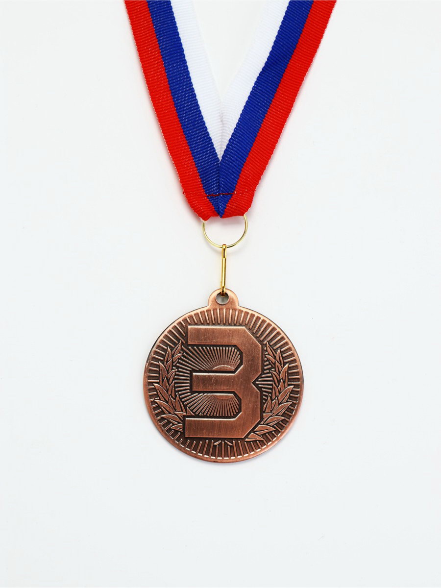 Медаль призовая "3 место", бронза 203, d=5 см, с лентой, 50х50х0.2 см., Сима-ленд, Китай