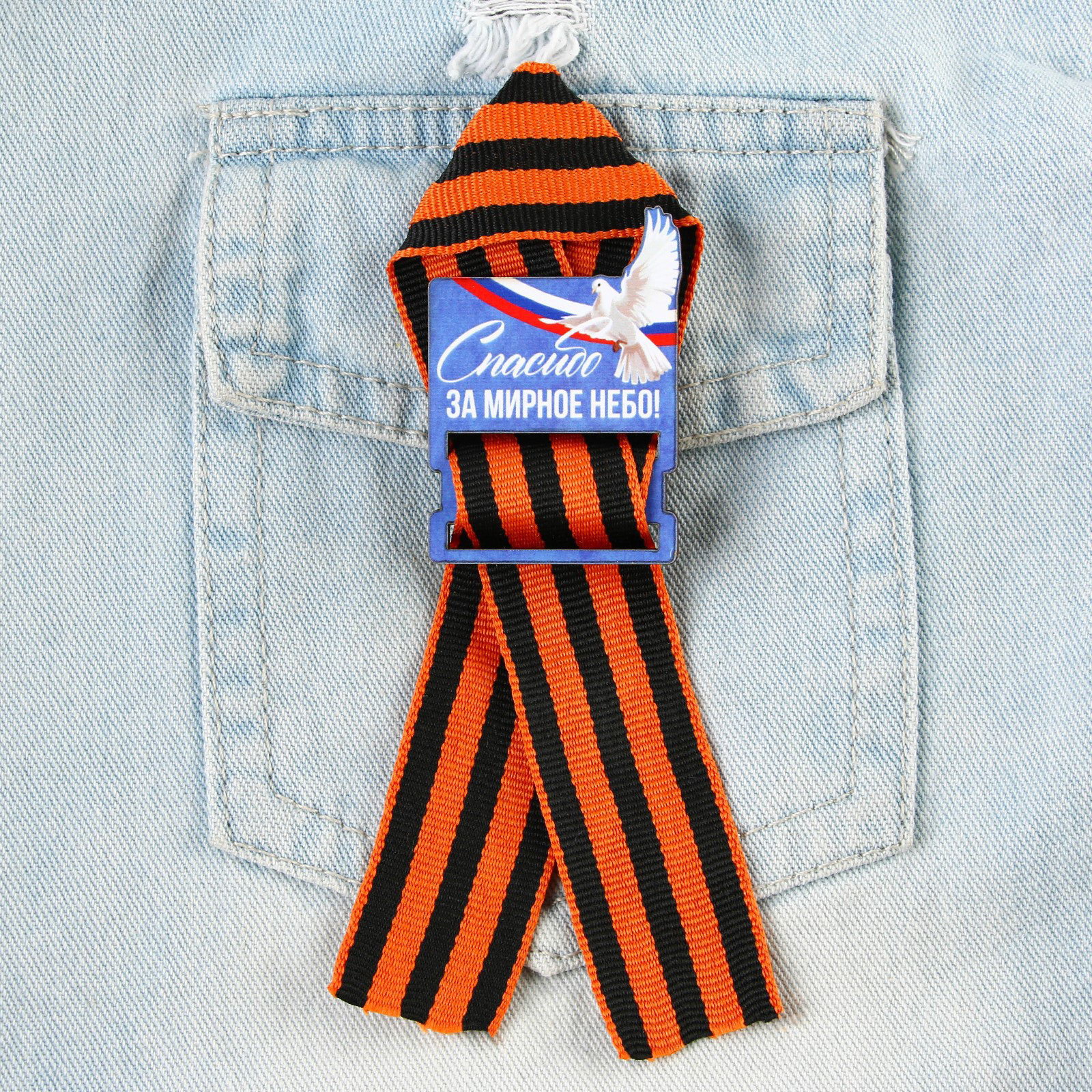 Деревянный орден с георгиевской лентой на 9 Мая "Спасибо за мирное небо", 4.4x6.3 см, Сима-ленд, Россия