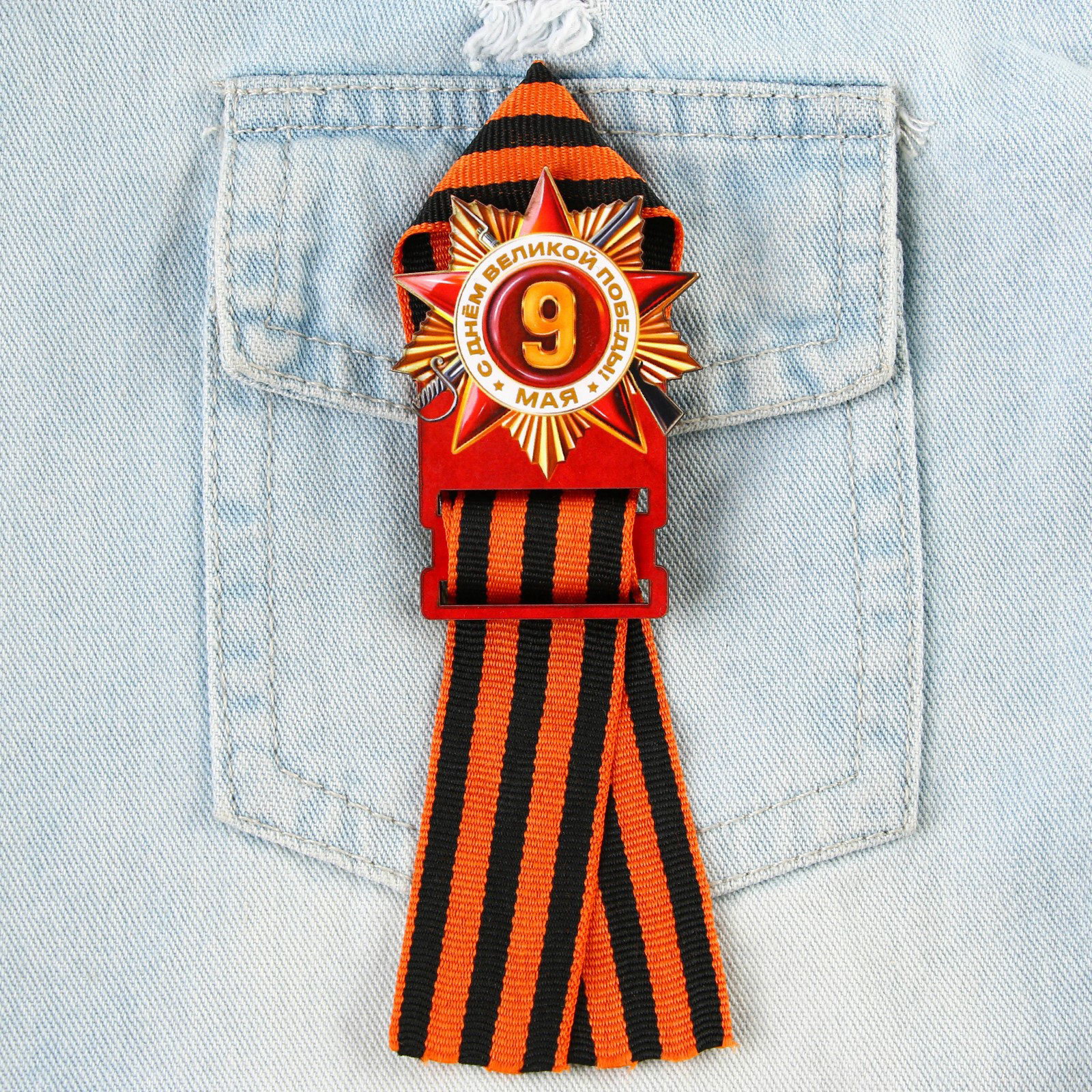 Деревянный орден с георгиевской лентой "9 мая", 3.6x5 см, Сима-ленд, Россия