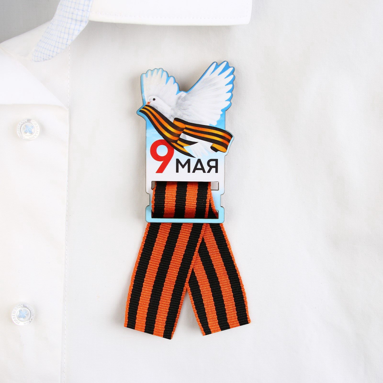 Значок с георгиевской лентой на 9 мая "Голубь", дерево, 4.3x7.2 см, Сима-ленд, Россия