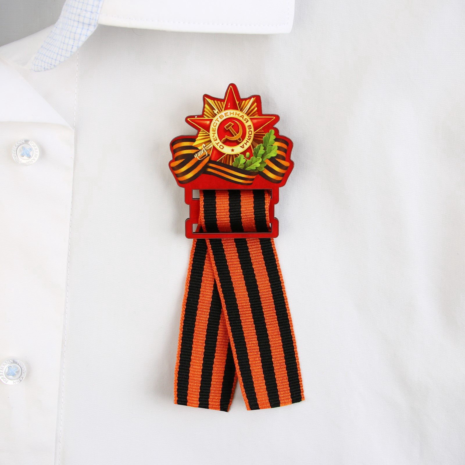 Значок деревянный с георгиевской лентой на 9 мая "Орден", 4.5x6.3 см, Сима-ленд, Россия
