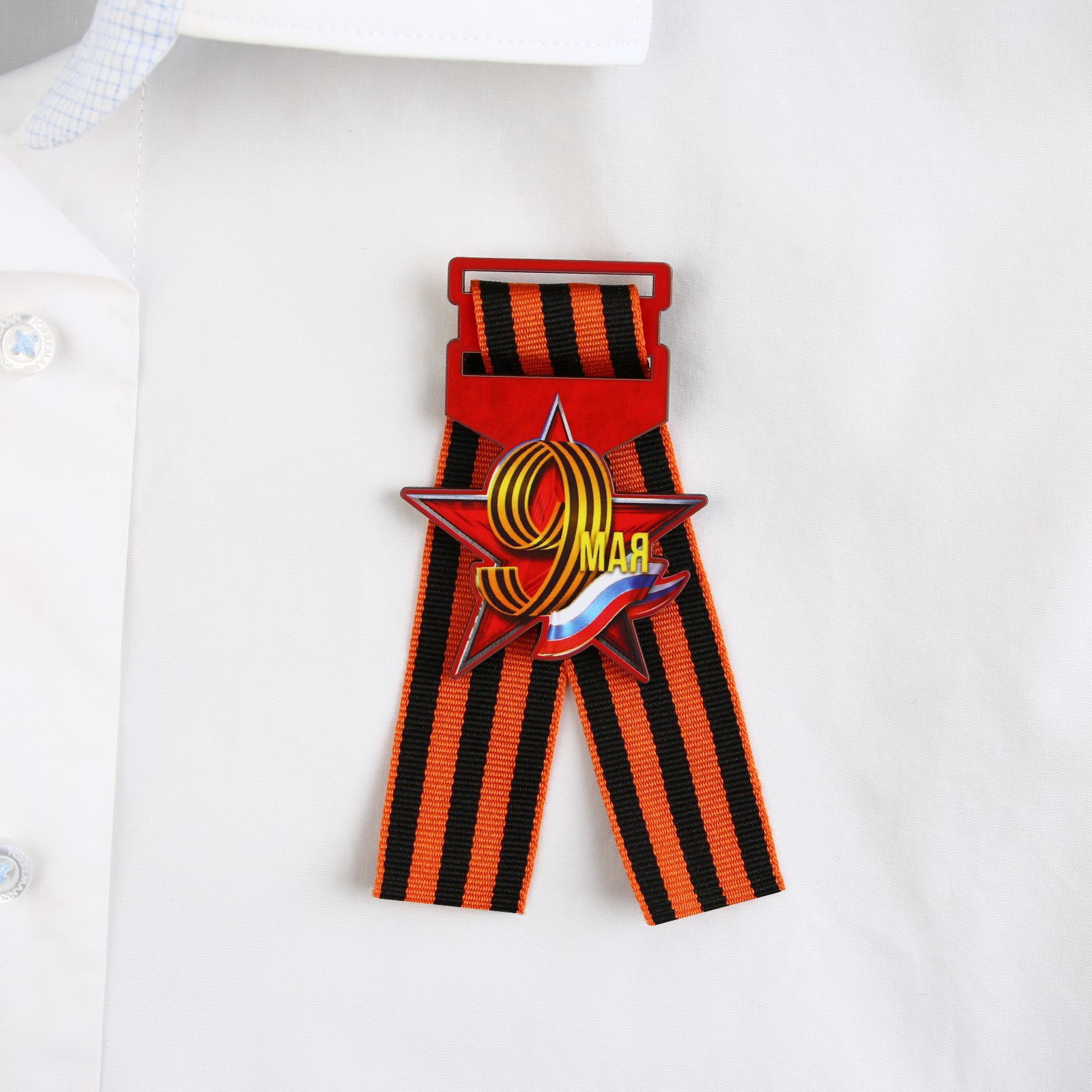Значок с георгиевской лентой на День Победы "9 мая", дерево, 4.6 x 5.7 см, Сима-ленд, Россия