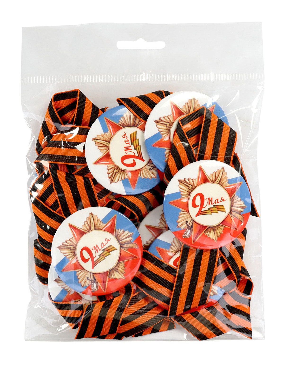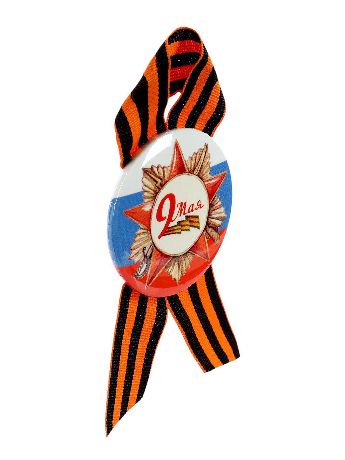 Значок закатной с георгиевской лентой "9 мая", 5.5 см., Россия