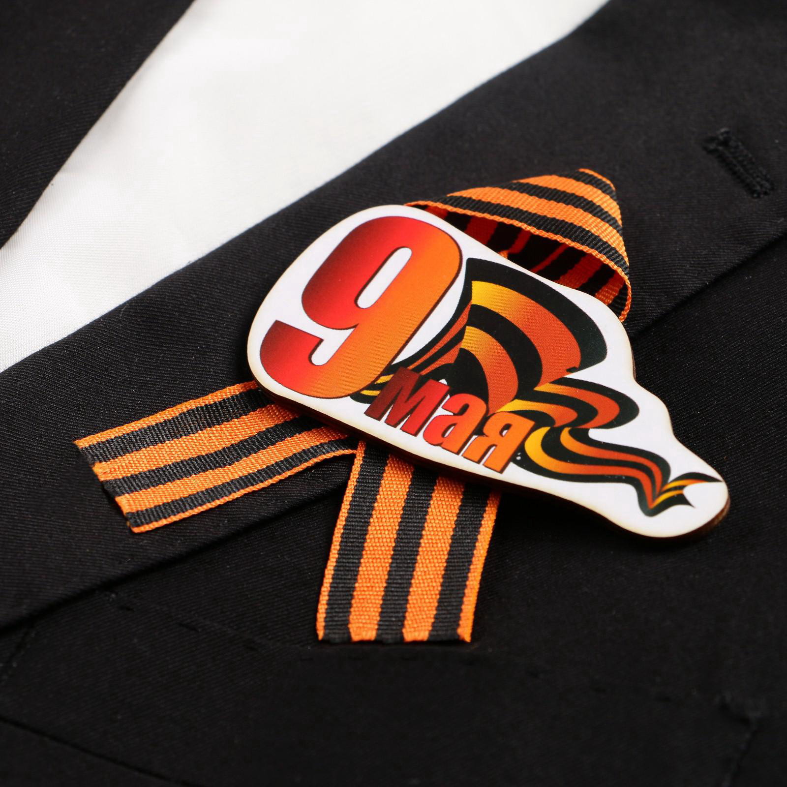Значок деревянный "9 Мая", с георгиевской лентой, 7 см., Россия