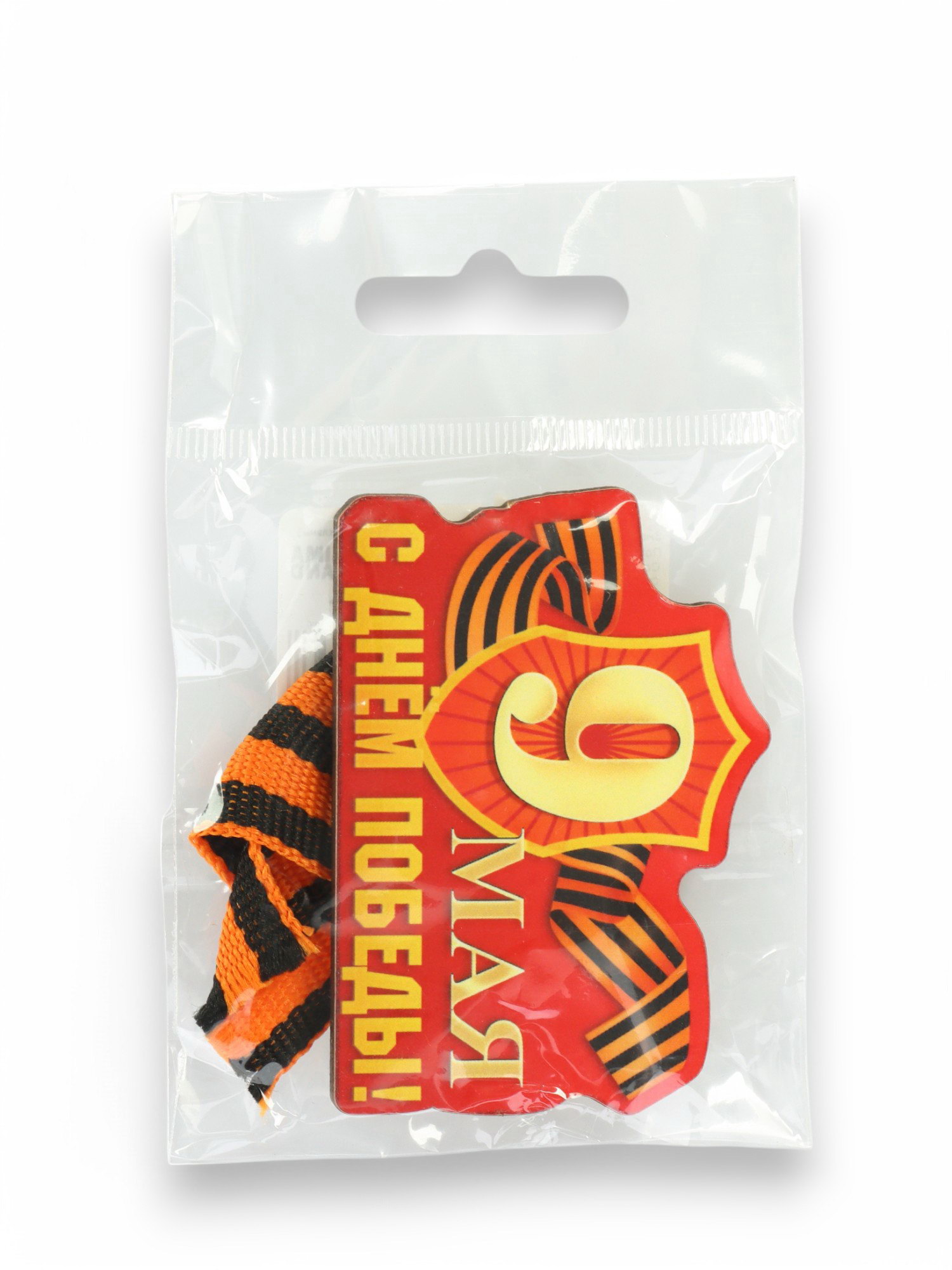 Значок деревянный на 9 мая "С Днём Победы!", с георгиевской лентой, 7 см., Россия
