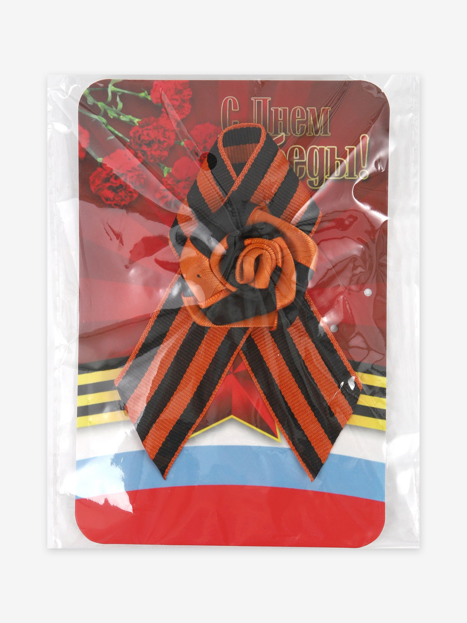 Георгиевская лента на 9 мая "Орден Победы", с булавкой и цветком, 6x9.5x2 см., Китай