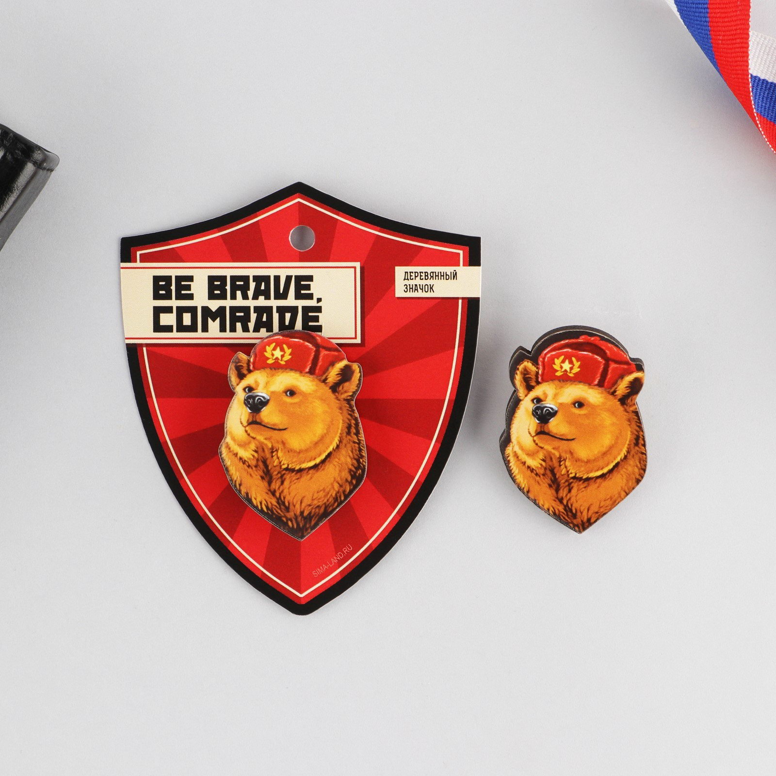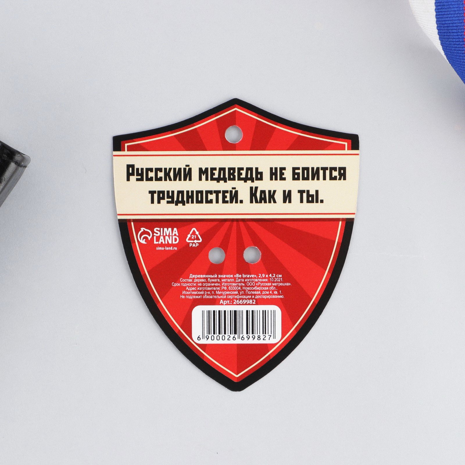 Деревянный значок "Be brave", 4x4x0.4 см., Micio, Россия