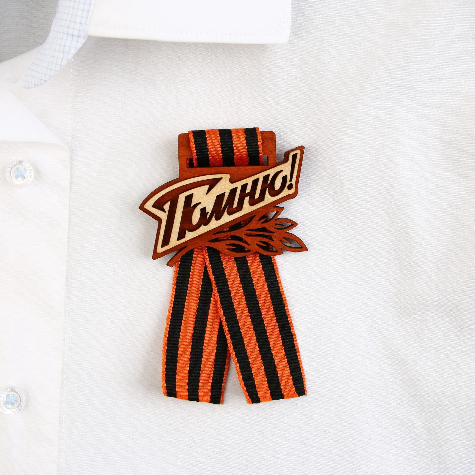 Значок деревянный с георгиевской лентой на 9 мая "Помню!", 6.1x4.8 см, Сима-ленд, Россия
