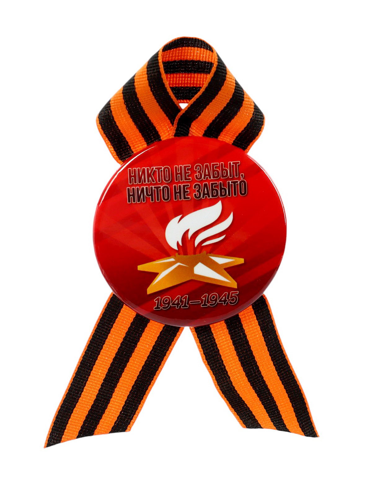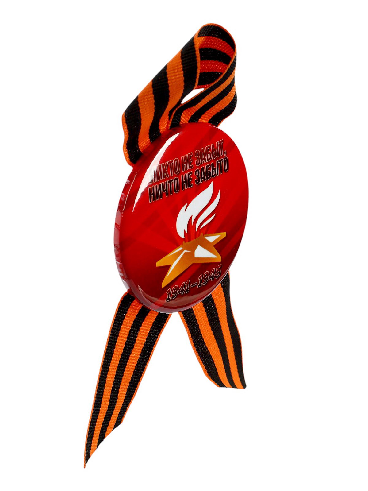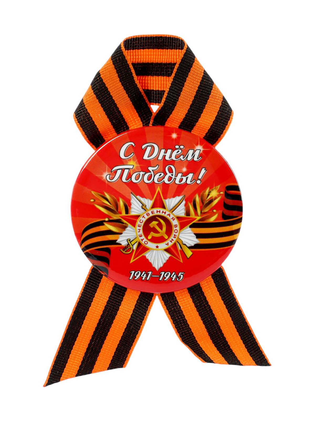 Значок закатной с георгиевской лентой "9 Мая", МИКС, 5.5 см., Россия
