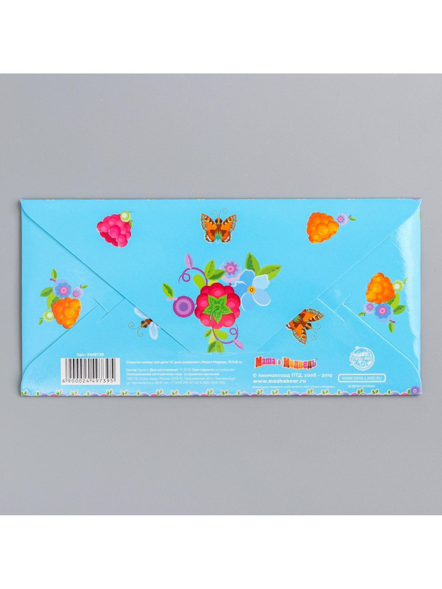 Конверт для денег, 16.5 x 8 см "С днём Рождения!", Маша и Медведь, Россия