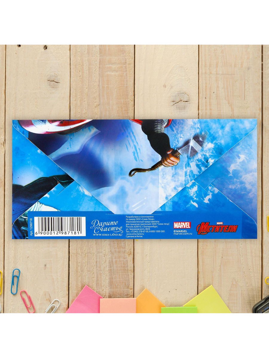 Конверт для денег "С днём рождения, герой!", 16.5 x 8 см, 0.1x27x22 см., MARVEL, Россия