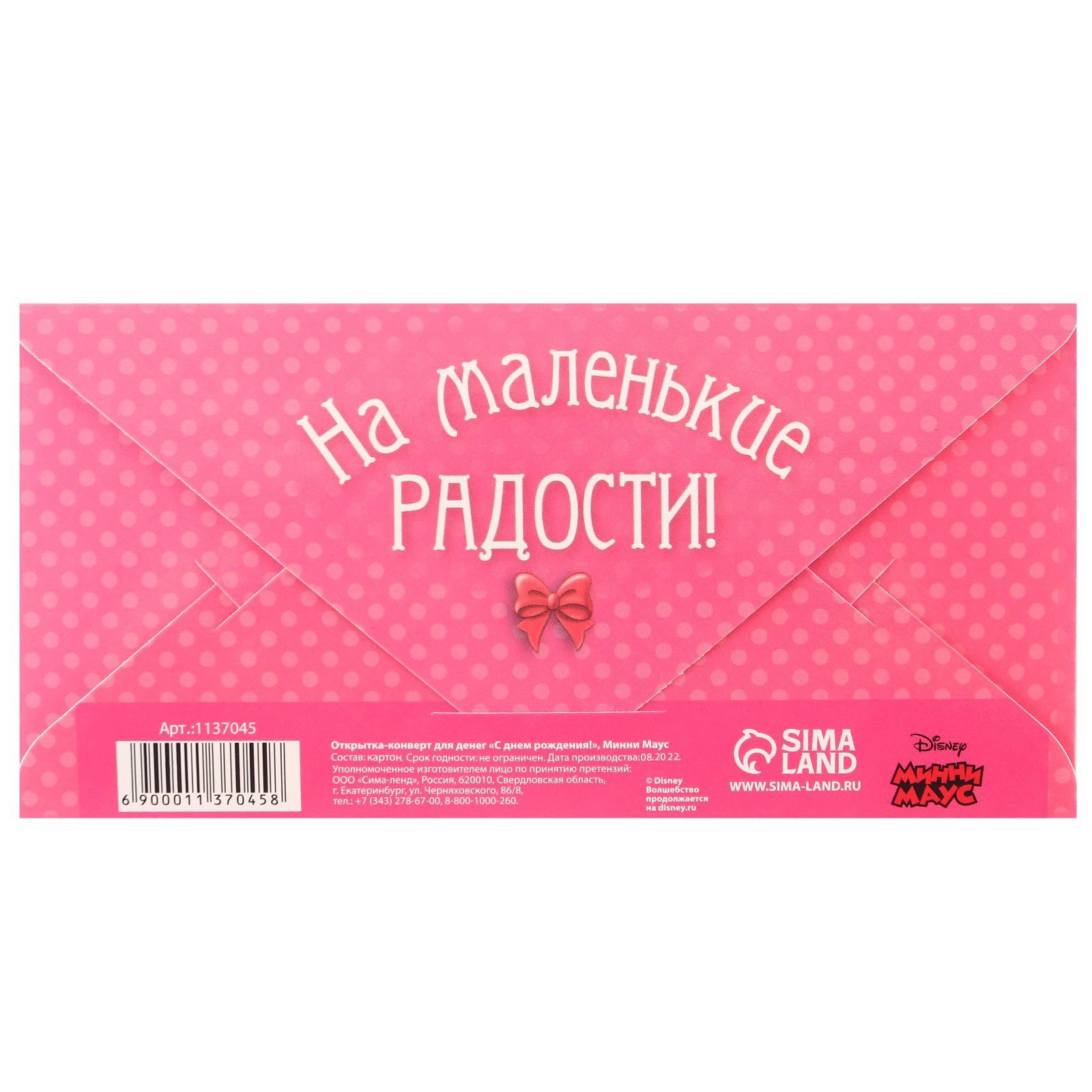 Конверт для денег, 17 x 8.5 см "С днём рождения", Минни Маус, 0.1x17x8.5 см., Disney, Россия