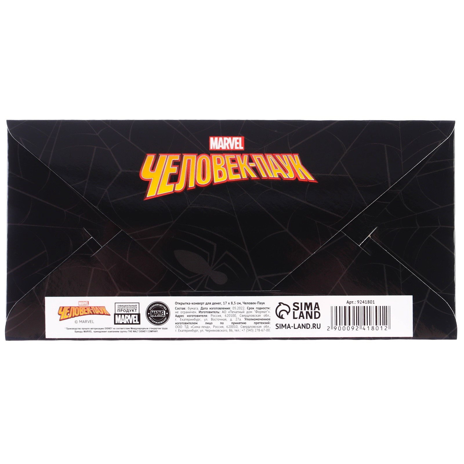 Конверт для денег, 16.5 x 8 см "Супер-мен", Человек-паук, MARVEL, Китай