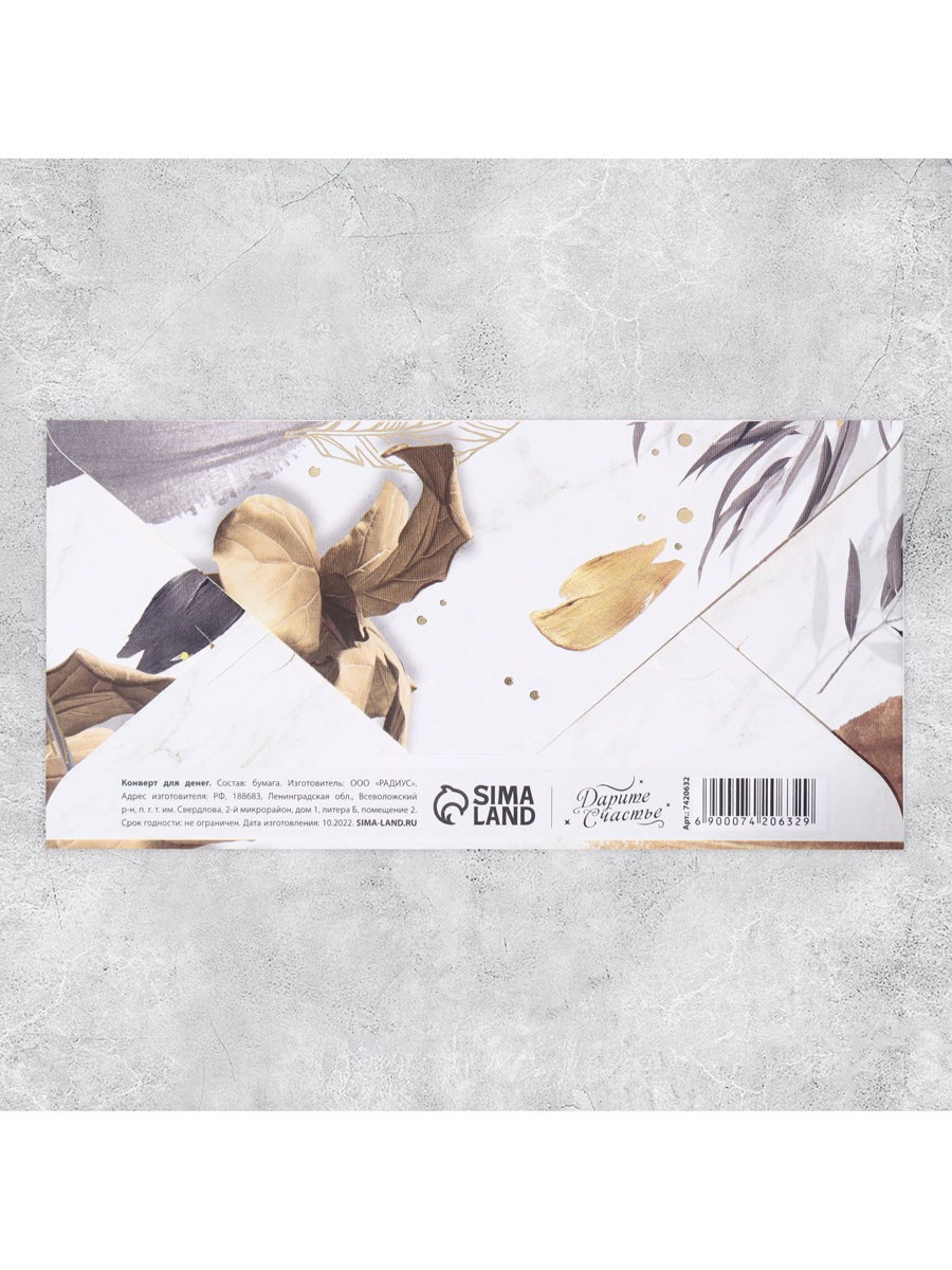Конверт для денег "С Днем Рождения", тиснение, 16.5x8 см, Дарите Счастье, Россия