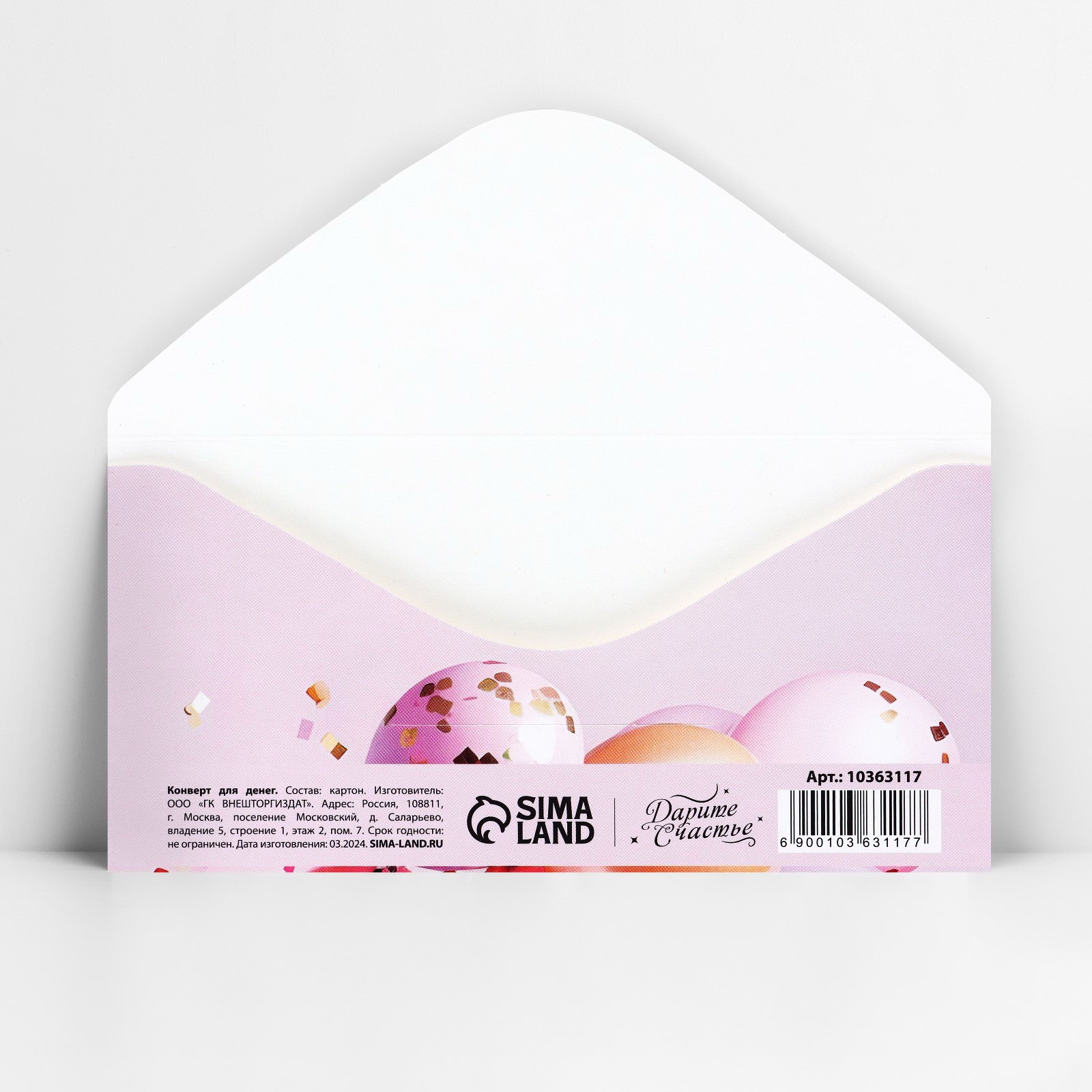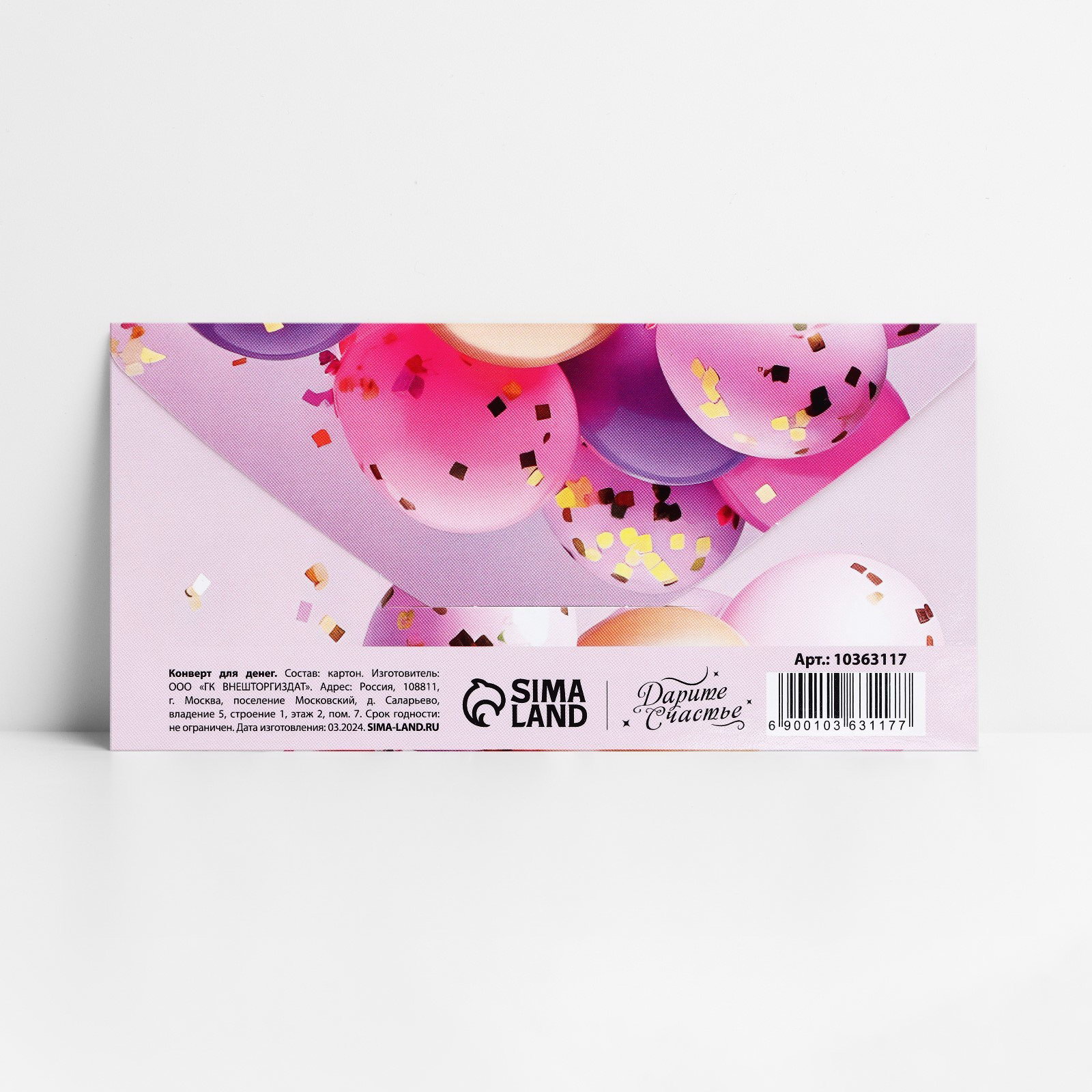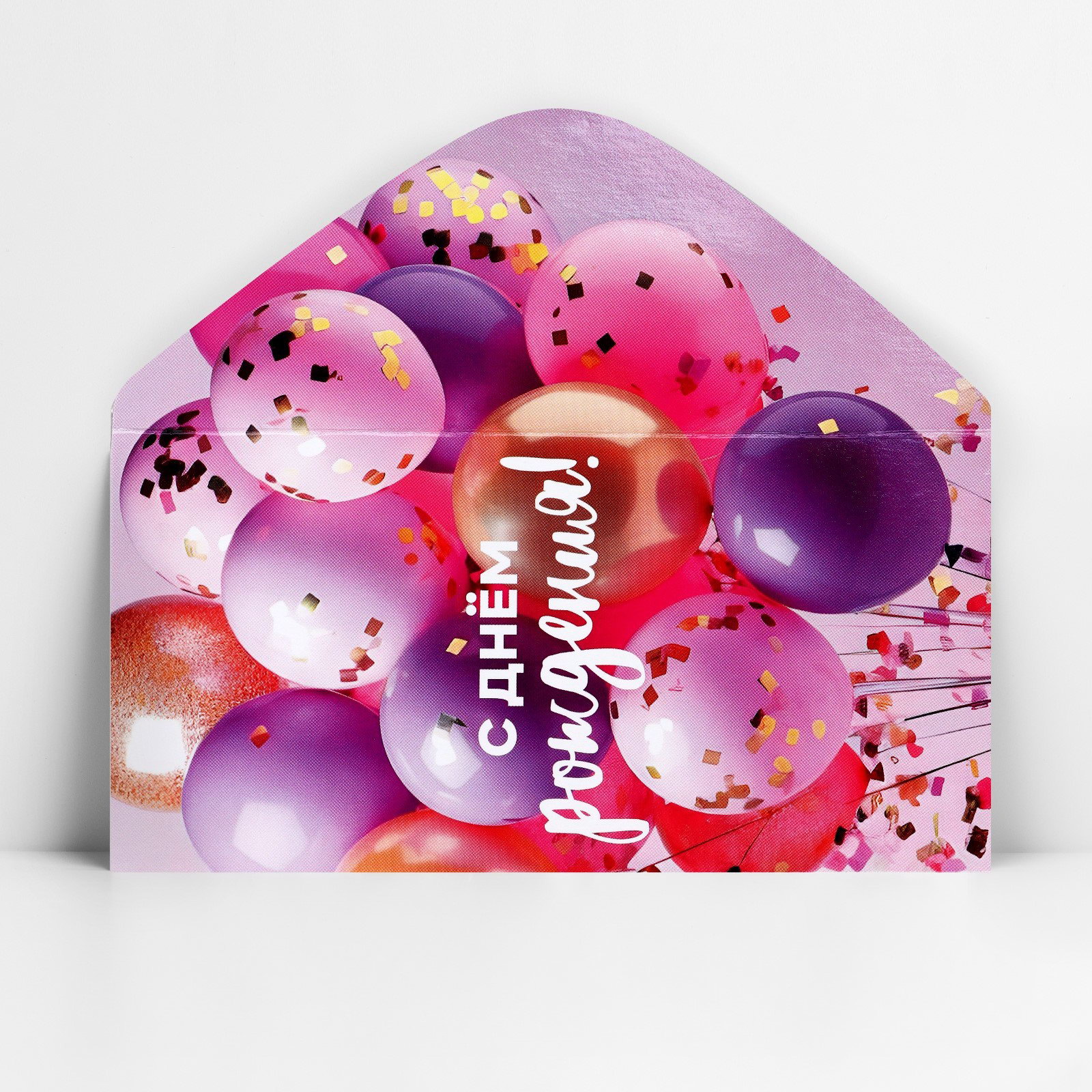 Конверт для денег "С Днём рождения!", шары на розовом, 16.5x8 см, Дарите Счастье, Россия