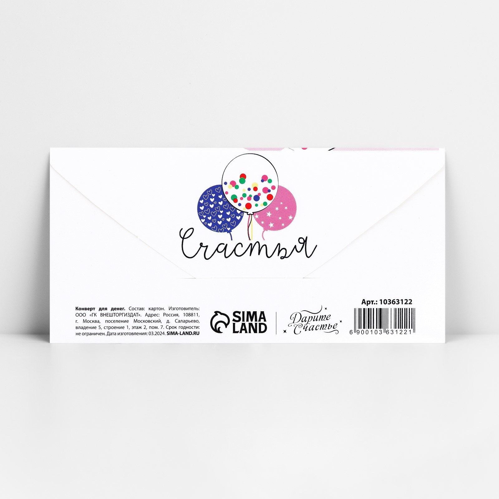 Конверт для денег "С Днём рождения!", 16.5x8 см, Дарите Счастье, Россия