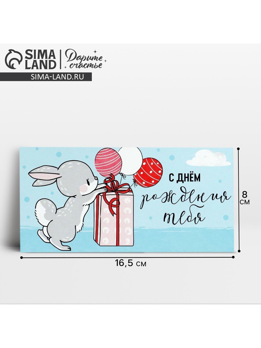 Конверт для денег "С Днём рождения!", зайка, 16.5x8 см, Дарите Счастье, Россия