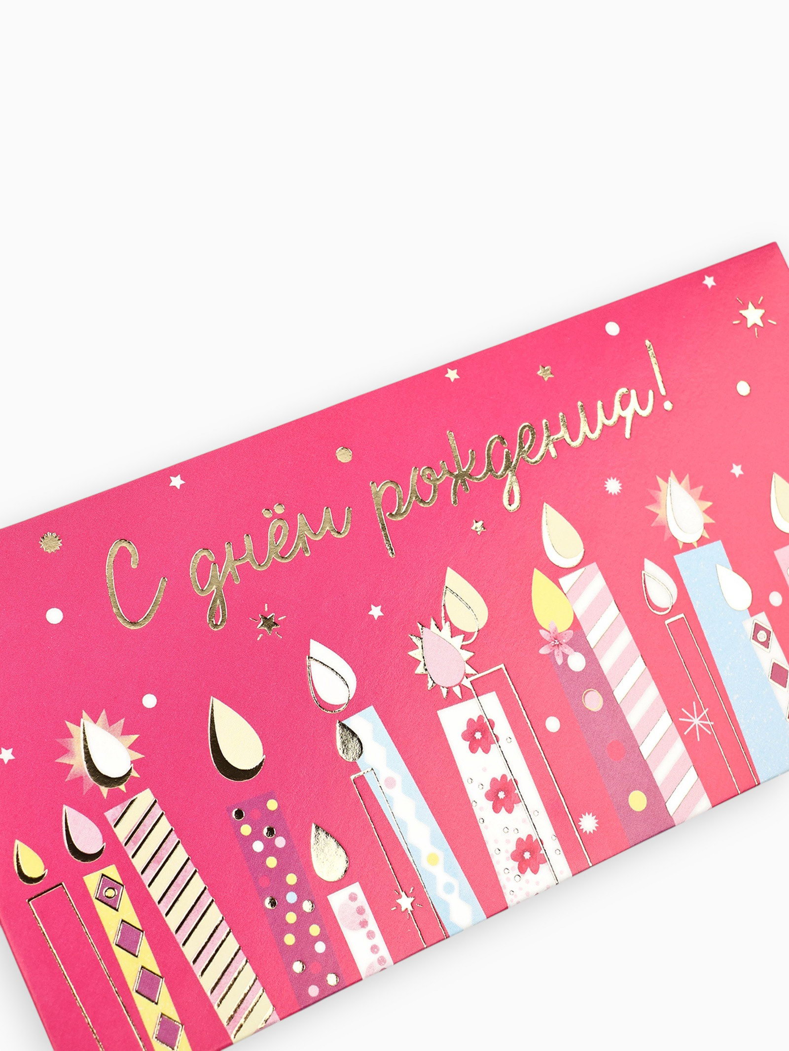 Конверт для денег "С днём рождения", свечки, тиснение, 16.5x8 см, Дарите Счастье, Россия