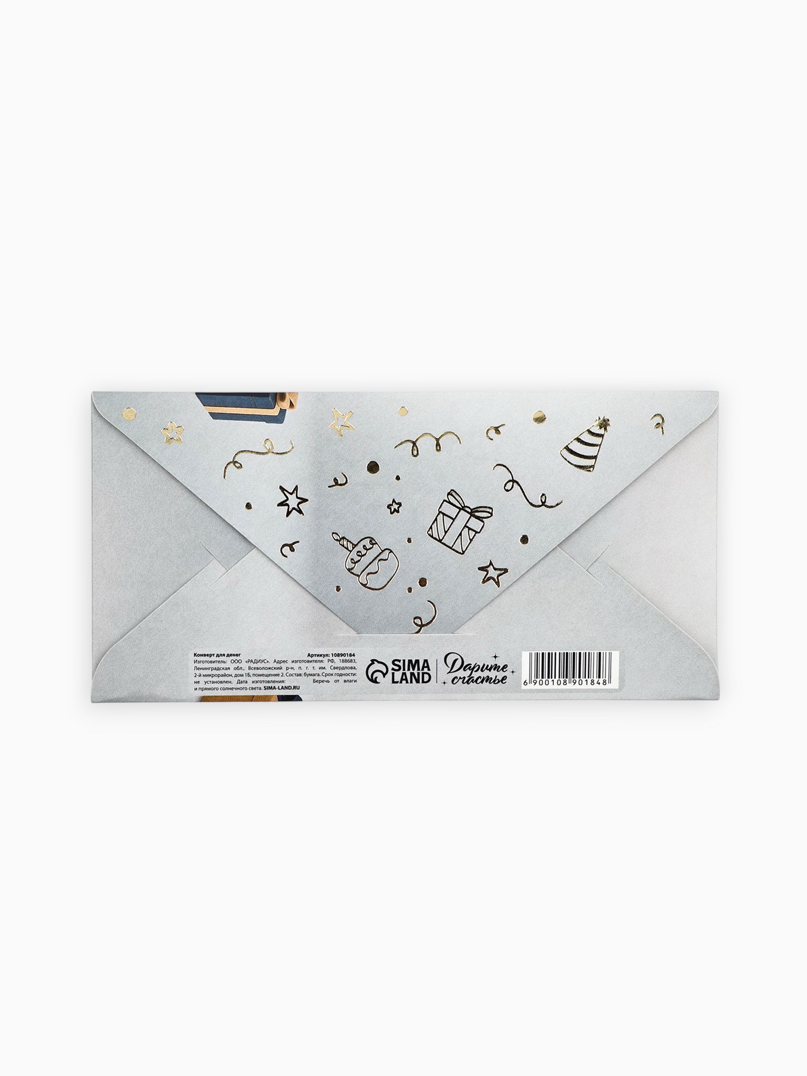 Конверт для денег "С днём рождения", мужской, тиснение, 16.5x8 см, Дарите Счастье, Россия