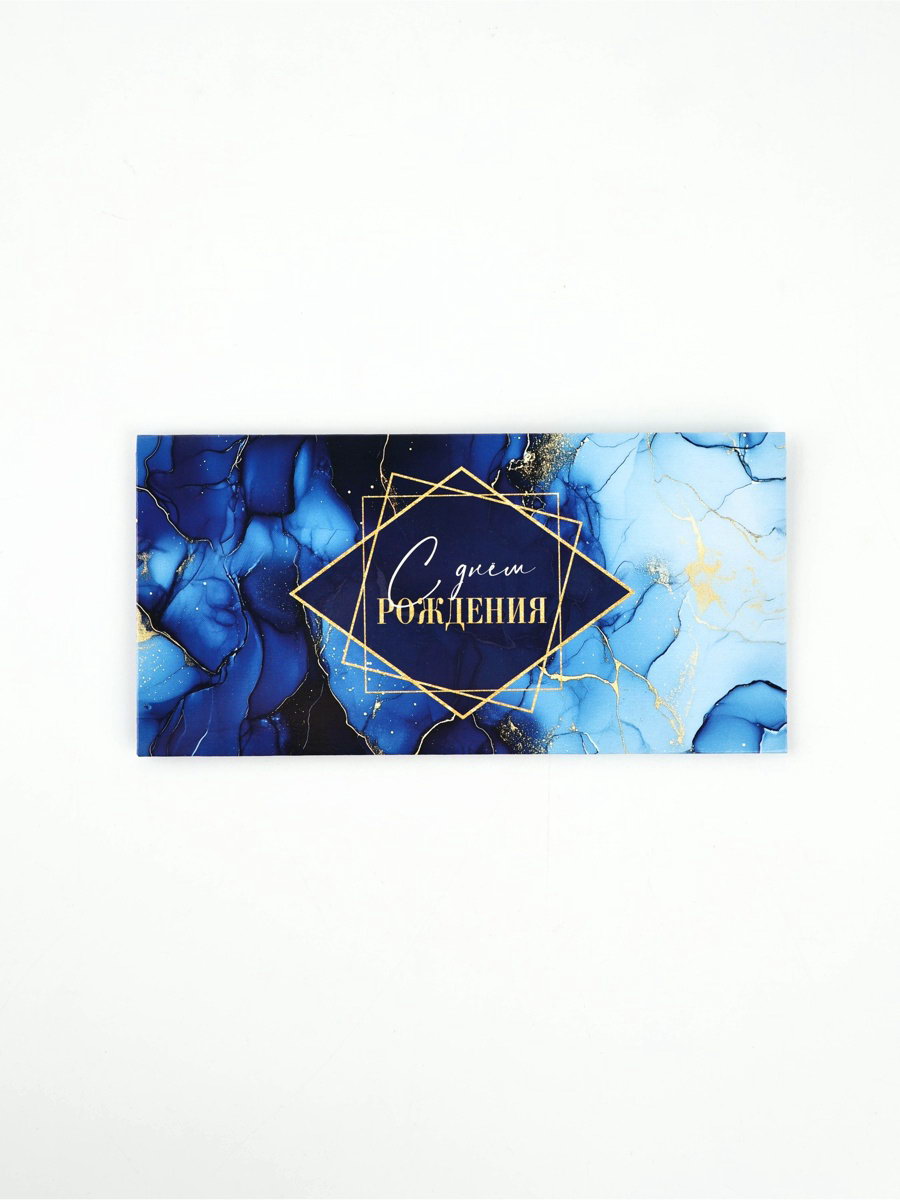 Конверт для денег "С днём рождения", синий мрамор, 16.5x8 см, Дарите Счастье, Россия