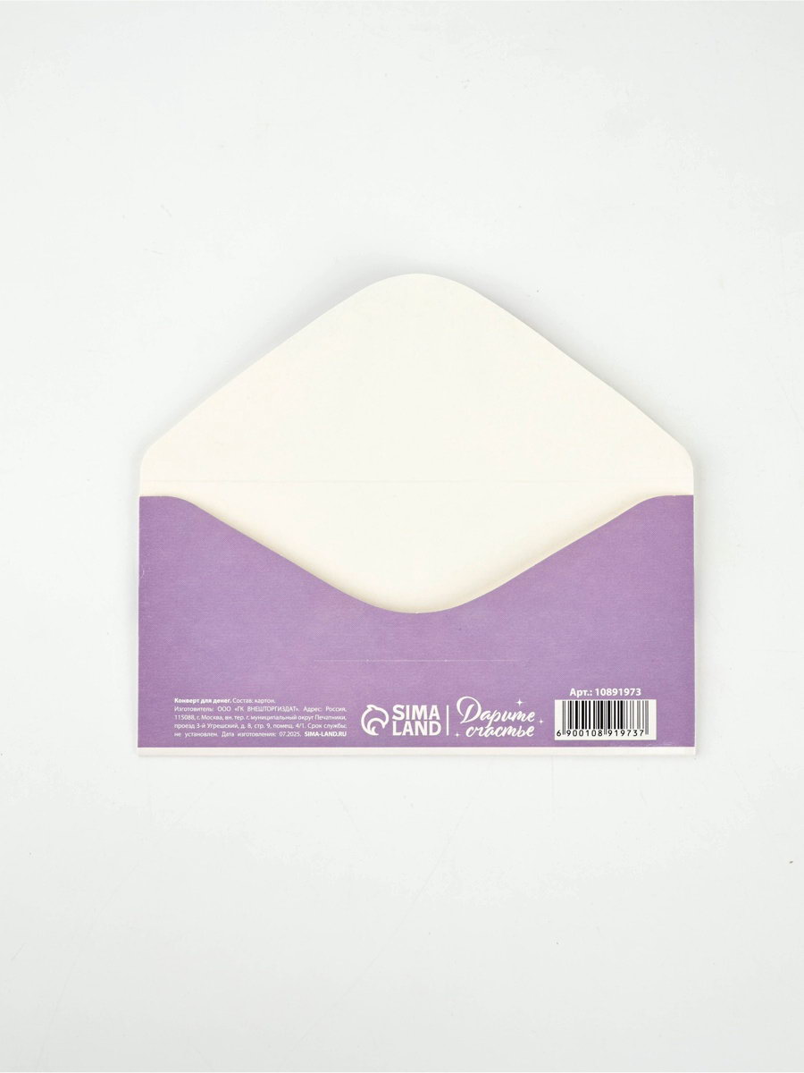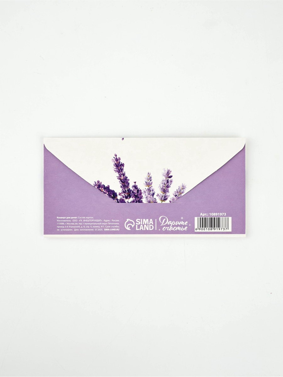 Конверт для денег "С днём рождения", лаванда, 16.5x8 см, Дарите Счастье, Россия