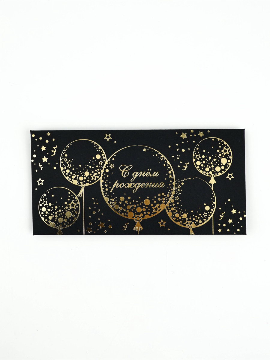 Конверт для денег "С днём рождения", 16.5x8 см, тиснение, чёрный крафт, 8x16.5x0.1 см., Дарите Счастье, Китай