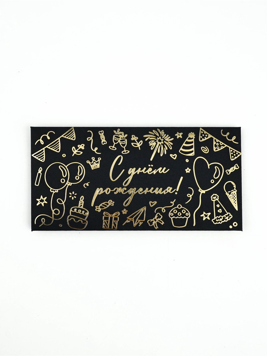 Конверт для денег "С днём рождения", 16.5x8 см, тиснение, чёрный крафт, 8x16.5x0.1 см., Дарите Счастье, Китай