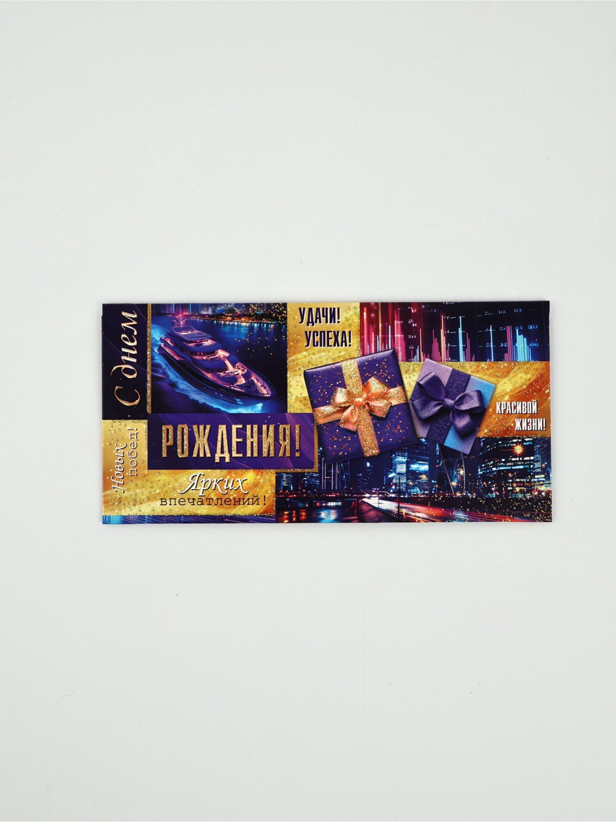 Конверт для денег "С днем рождения!"13, глиттер 3, 16.5 x 8 см, Мир открыток, Россия