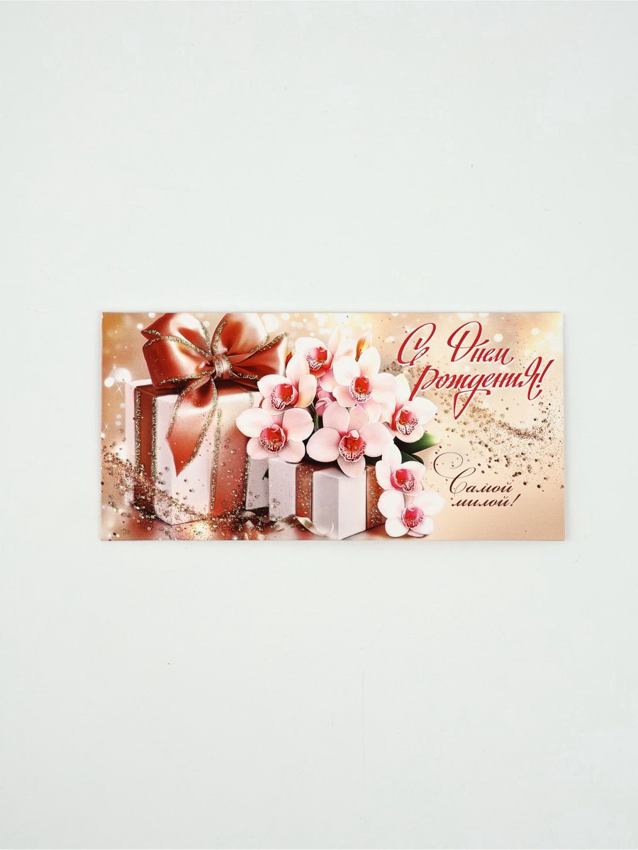 Конверт для денег "С днем рождения!"14, глиттер 4, 16.5 x 8 см, Мир открыток, Россия