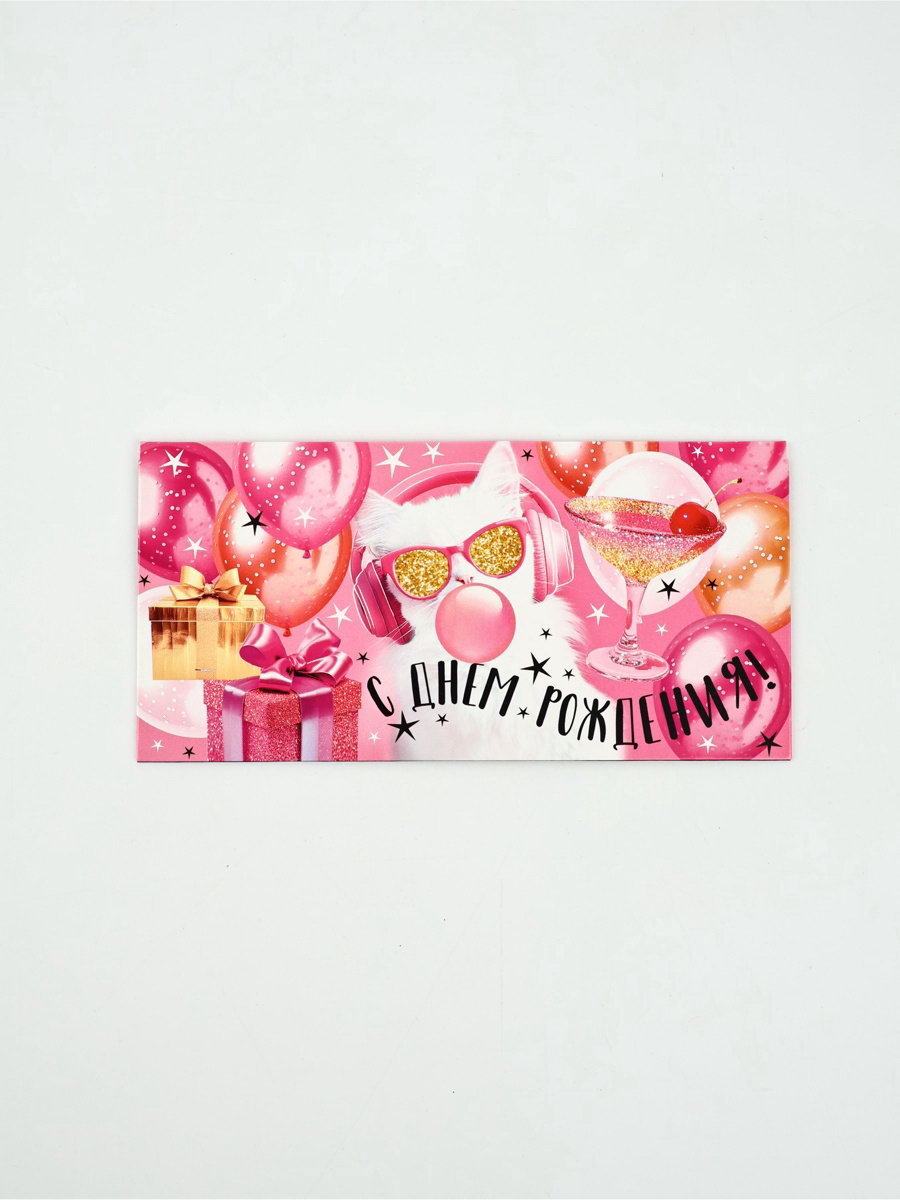 Конверт для денег "С днем рождения!", 16.5x8 см, Мир открыток, Россия
