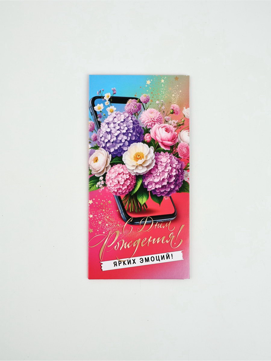 Конверт для денег "С днём рождения!", 16.5x8 см, Мир открыток, Россия