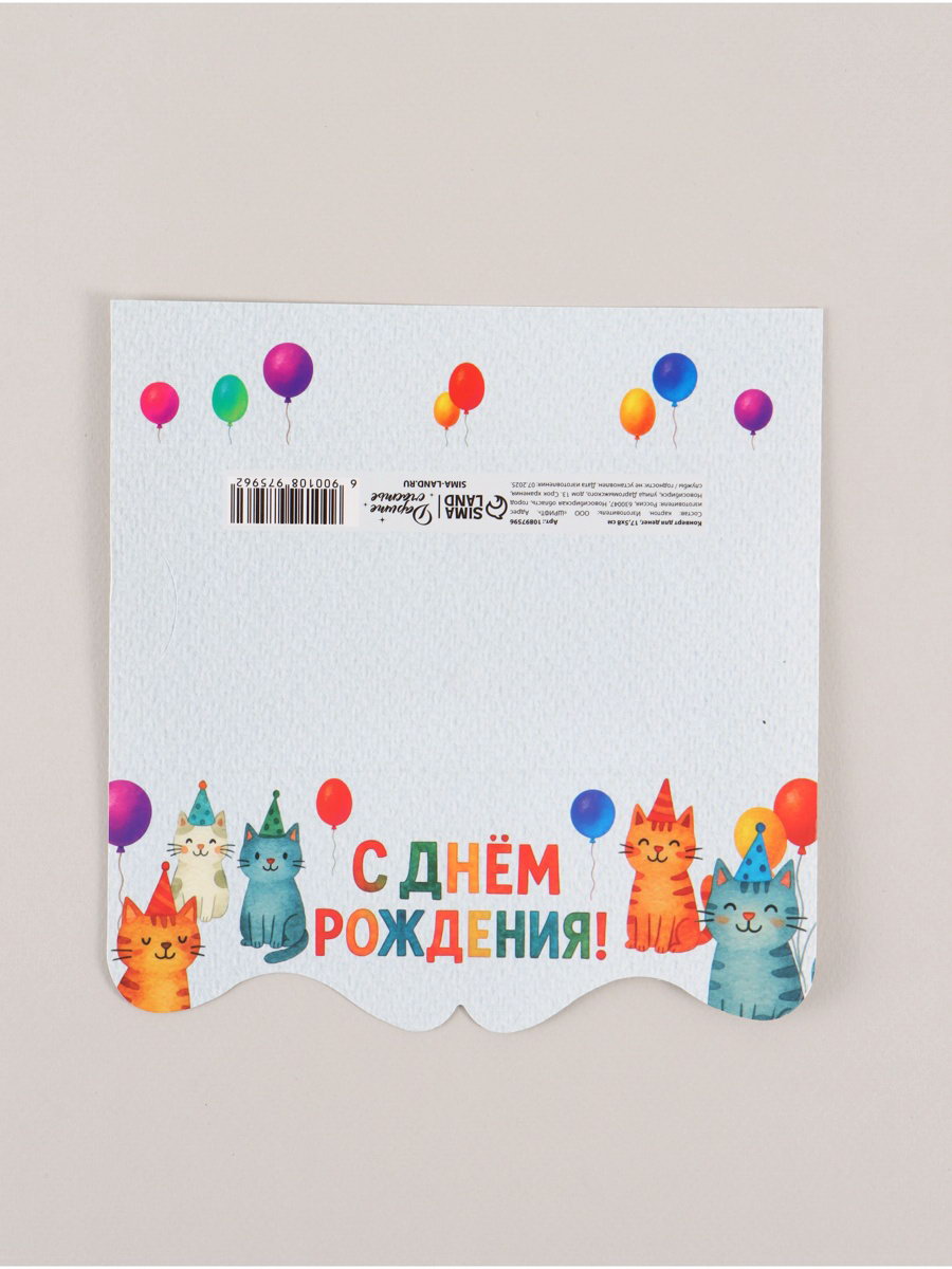 Конверт для денег фигурный "С днём рождения", коты, 17.5x8 см, Дарите Счастье, Россия