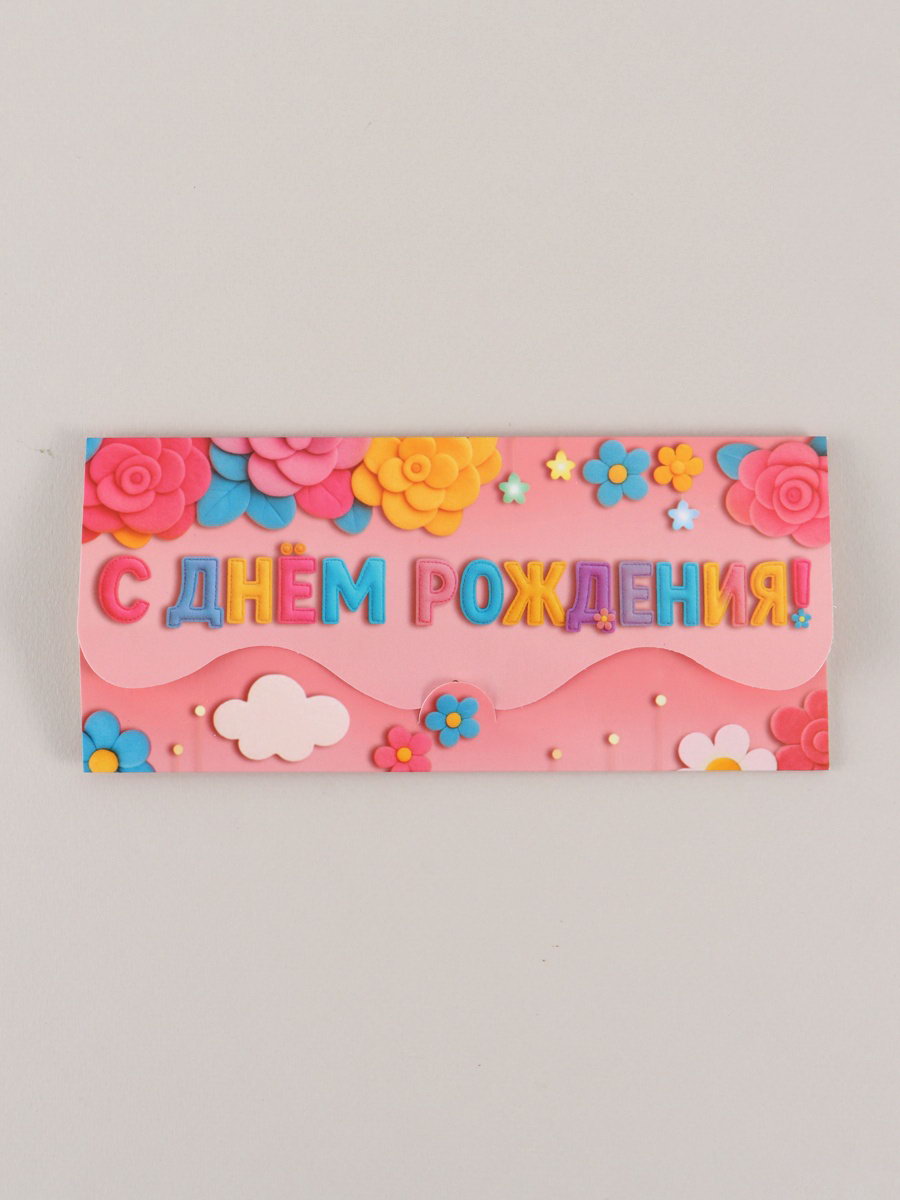 Конверт для денег формовой "С Днём рождения", розовый, 17.5x8 см, Россия