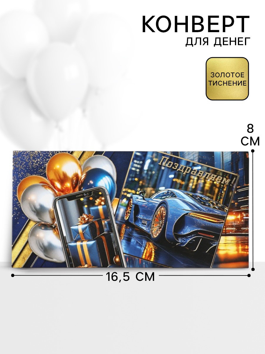 Конверт для денег "Поздравляем!", 16.5x8 см, Мир открыток, Россия
