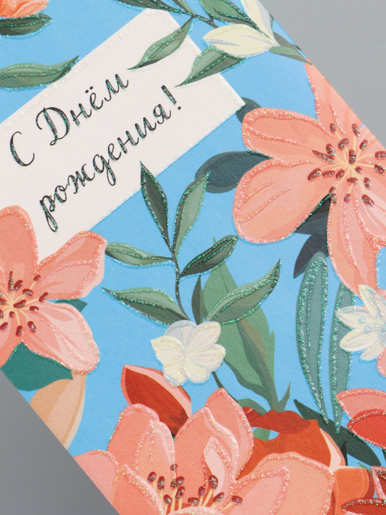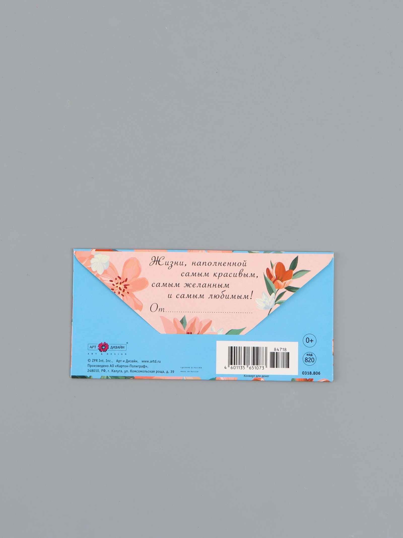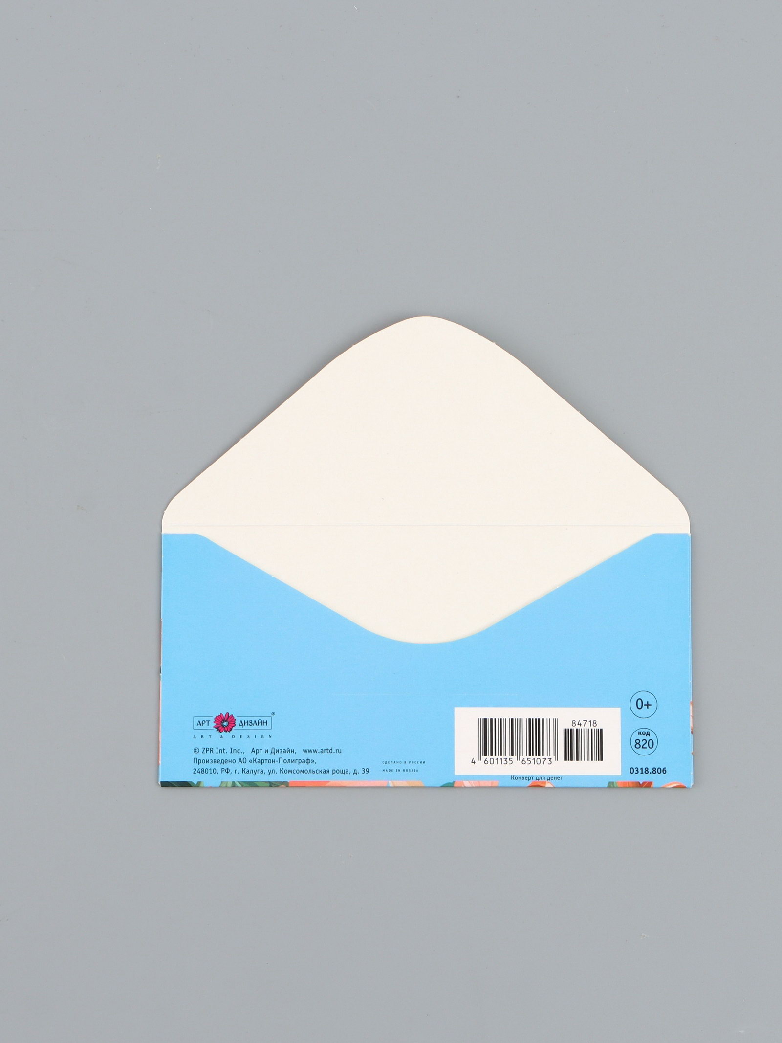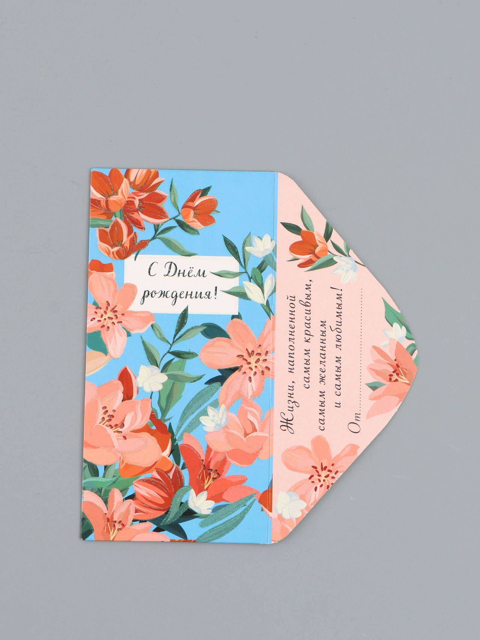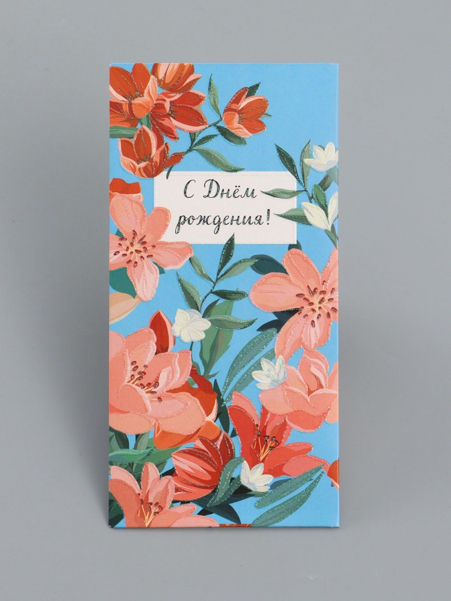 Конверт для денег "С днём рождения", цветы на синем, 16.5 x 8 см, Россия