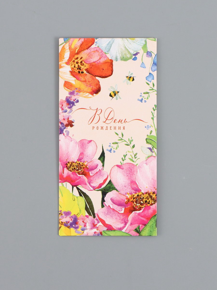 Конверт для денег "В день рождения", цветы на персиковом, 16.5 x 8 см, Россия