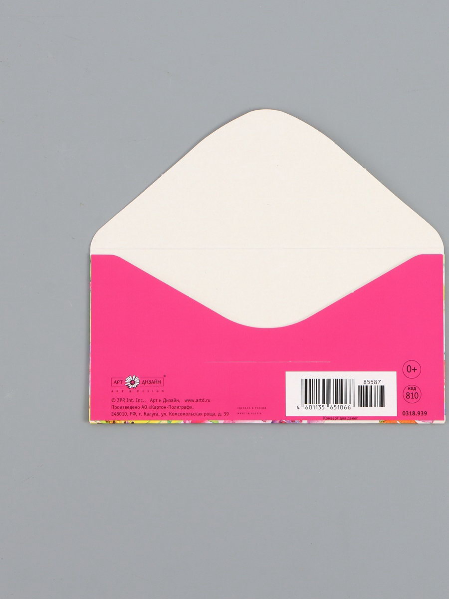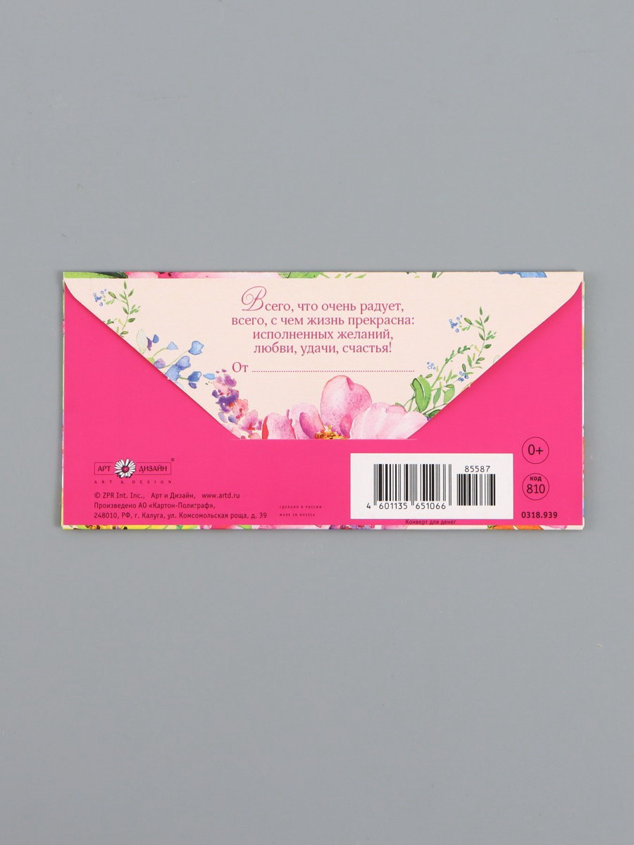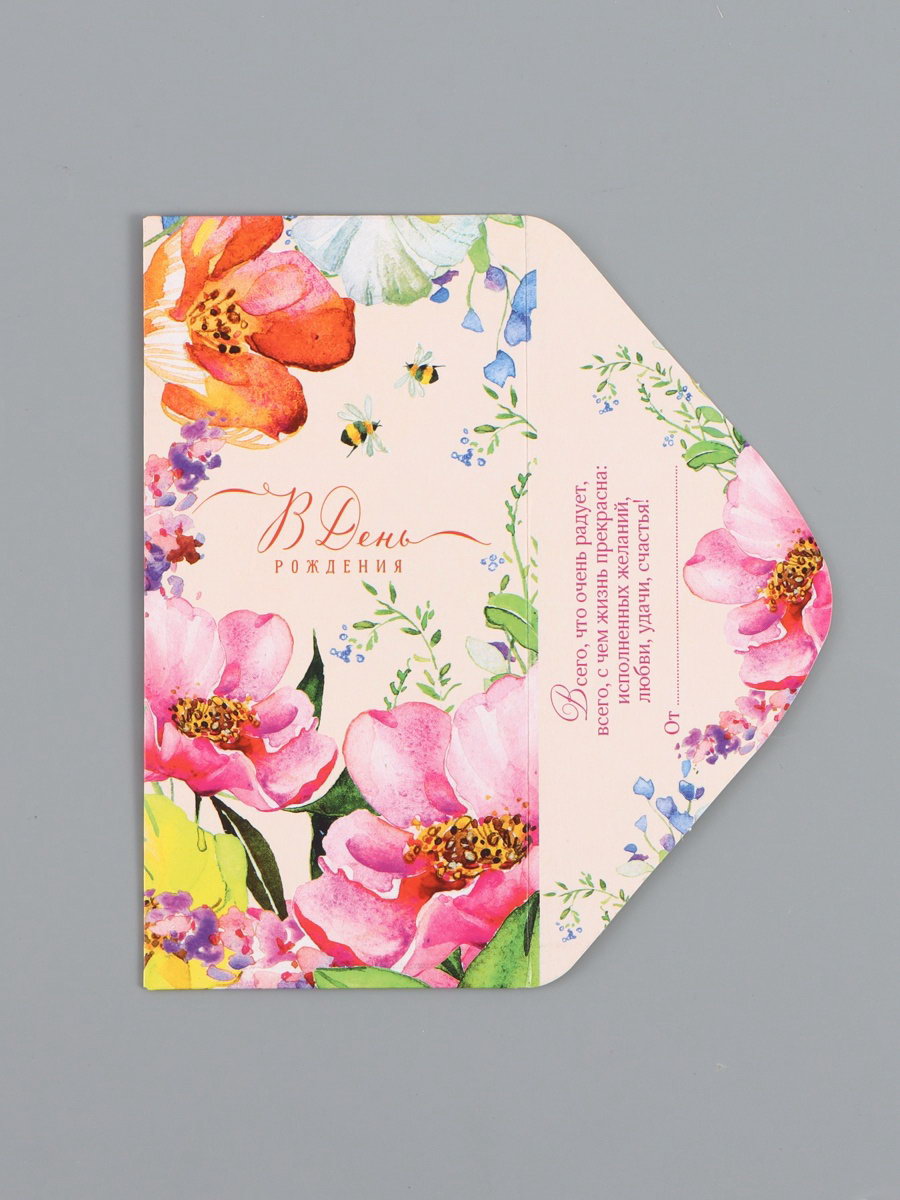 Конверт для денег "В день рождения", цветы на персиковом, 16.5 x 8 см, Россия