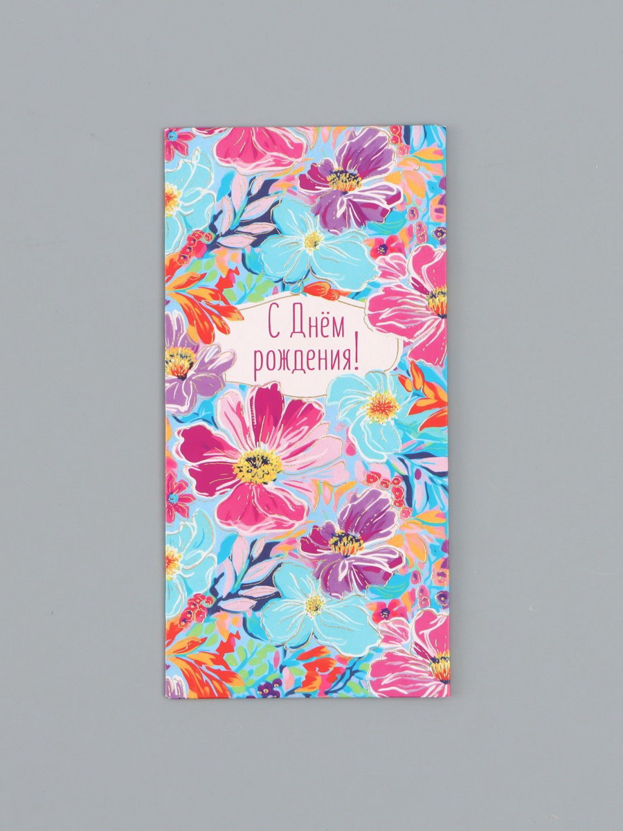 Конверт для денег "С днём рождения", цветы на голубом, 16.5 x 8 см, Россия