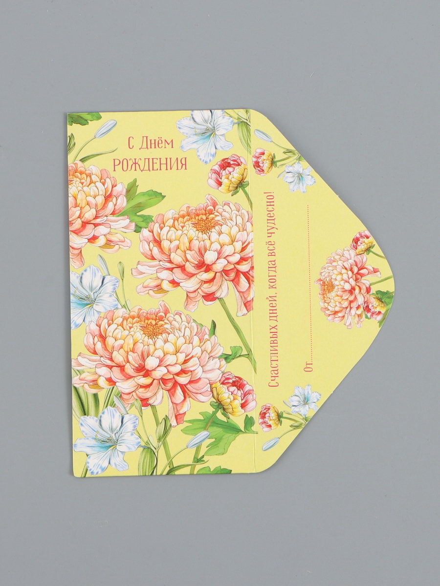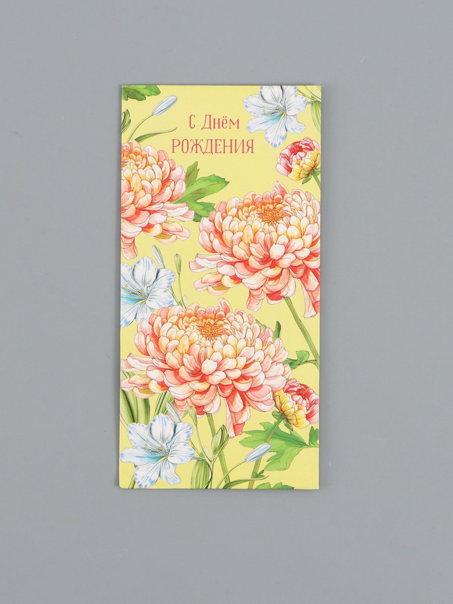 Конверт для денег "С днём рождения", цветочки на жёлтом, 16.5 x 8 см, Россия