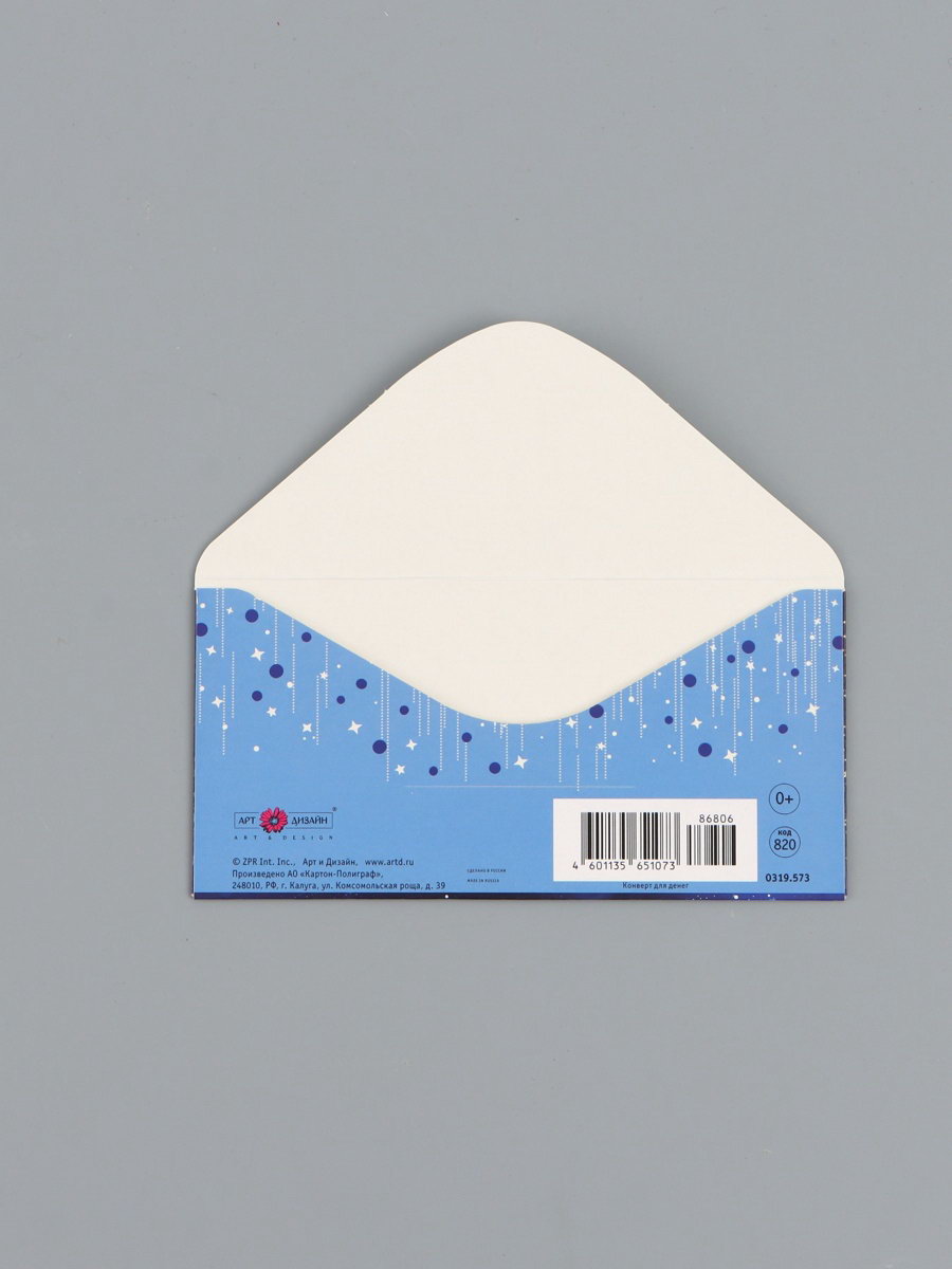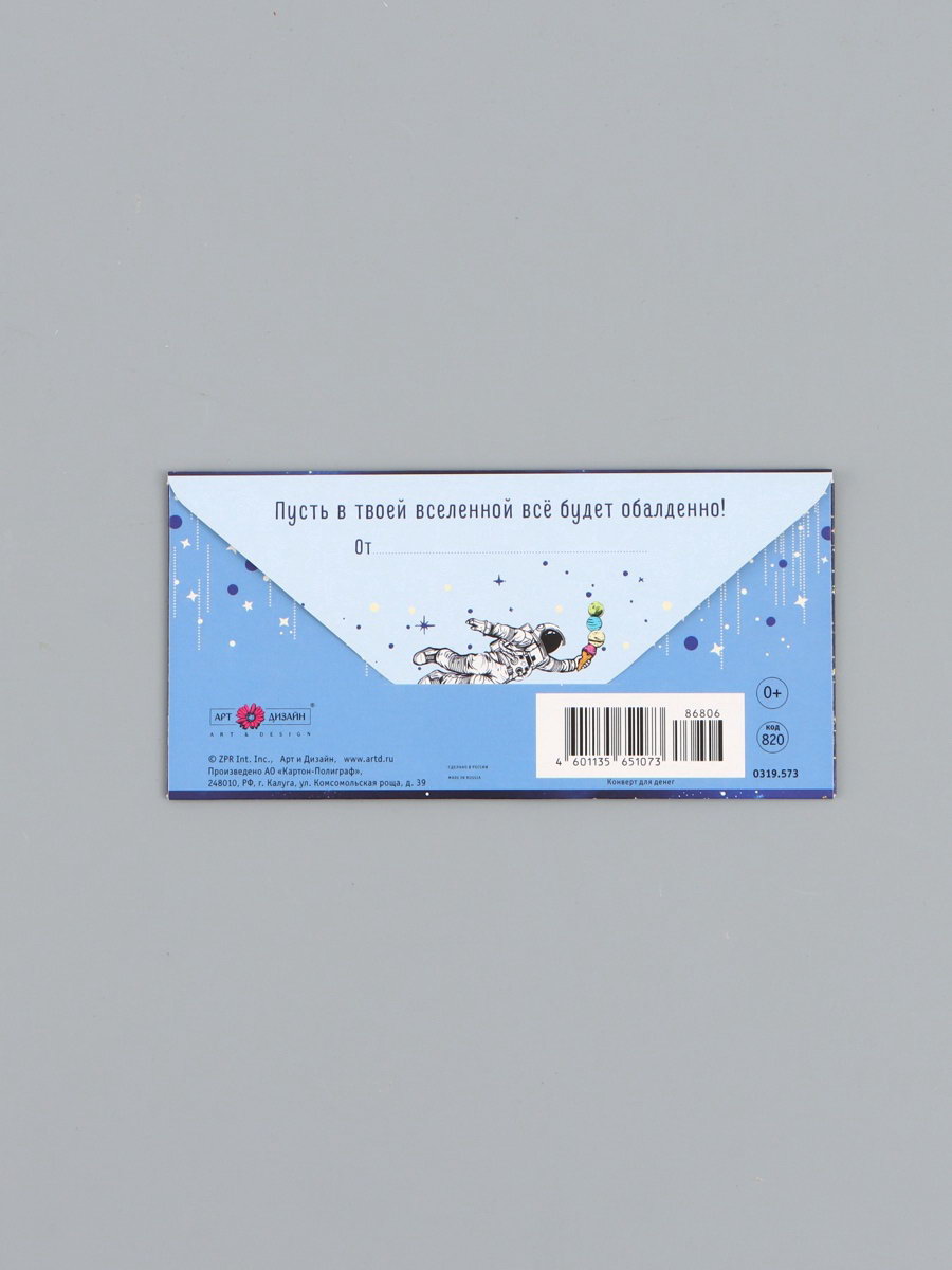 Конверт для денег "С днём рождения", космонавт, 16.5 x 8 см, Россия